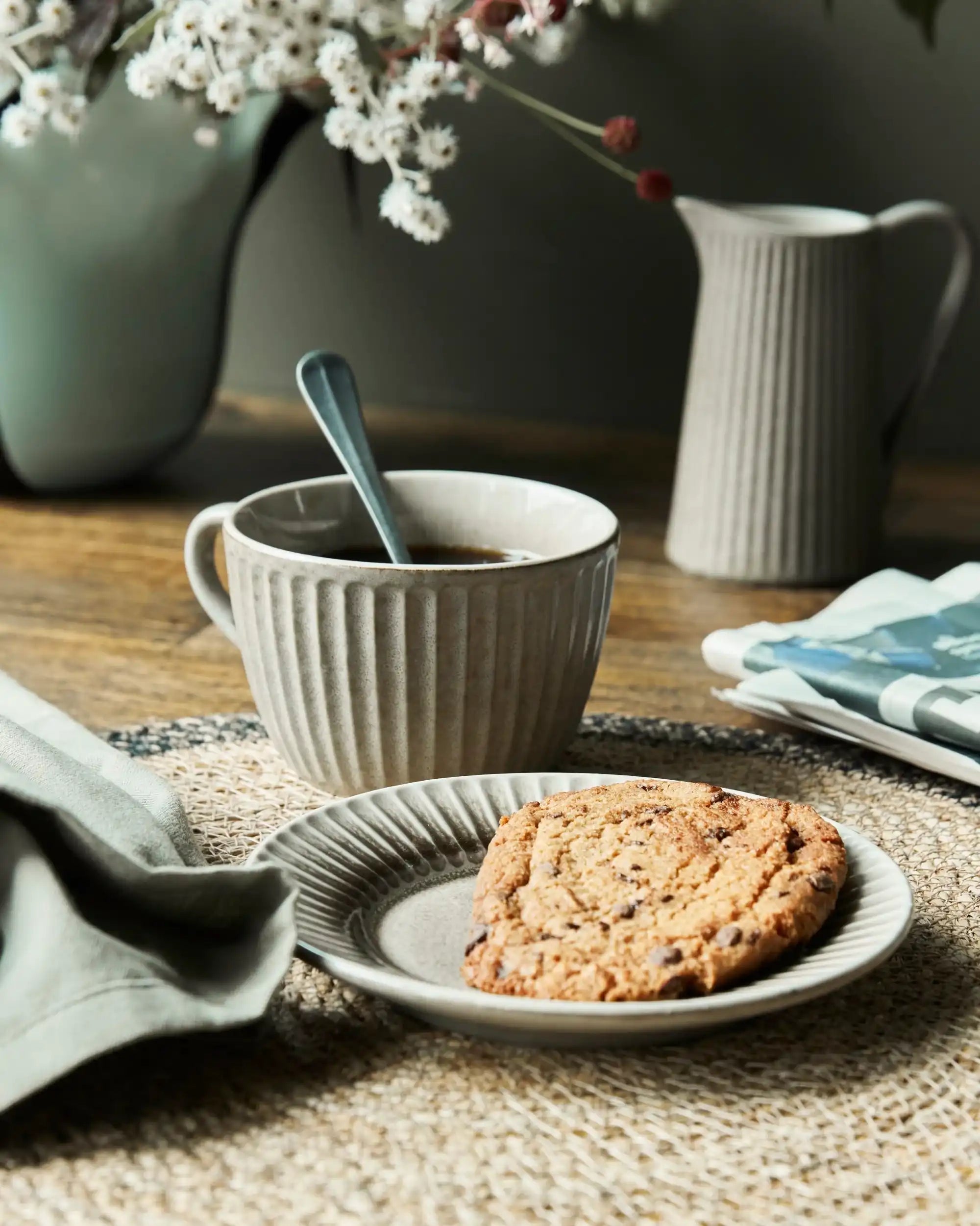 A cake moment deserves a plate as refined as the treat itself. This grey-brown cake plate from the Pleat series gives your table a stylish touch without overpowering it. The subtle shine on the inside contrasts beautifully with the matte exterior, while the ribbed edge adds an elegant accent every time you look at it.