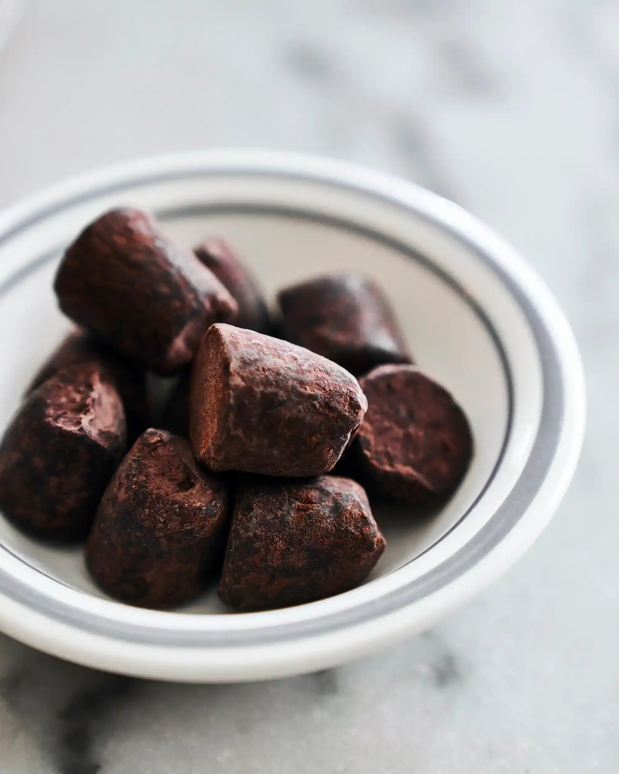 Create a luxurious dessert table by alternating these truffles with dried citrus fruit, coarse sea salt, and dark chocolate flakes. Serve on a sturdy wooden board for a bold, Scandinavian contrast.