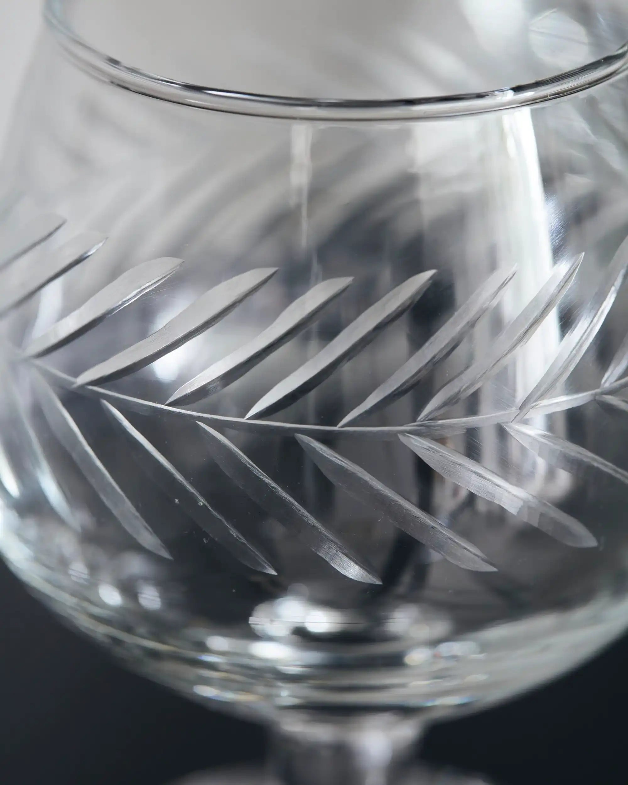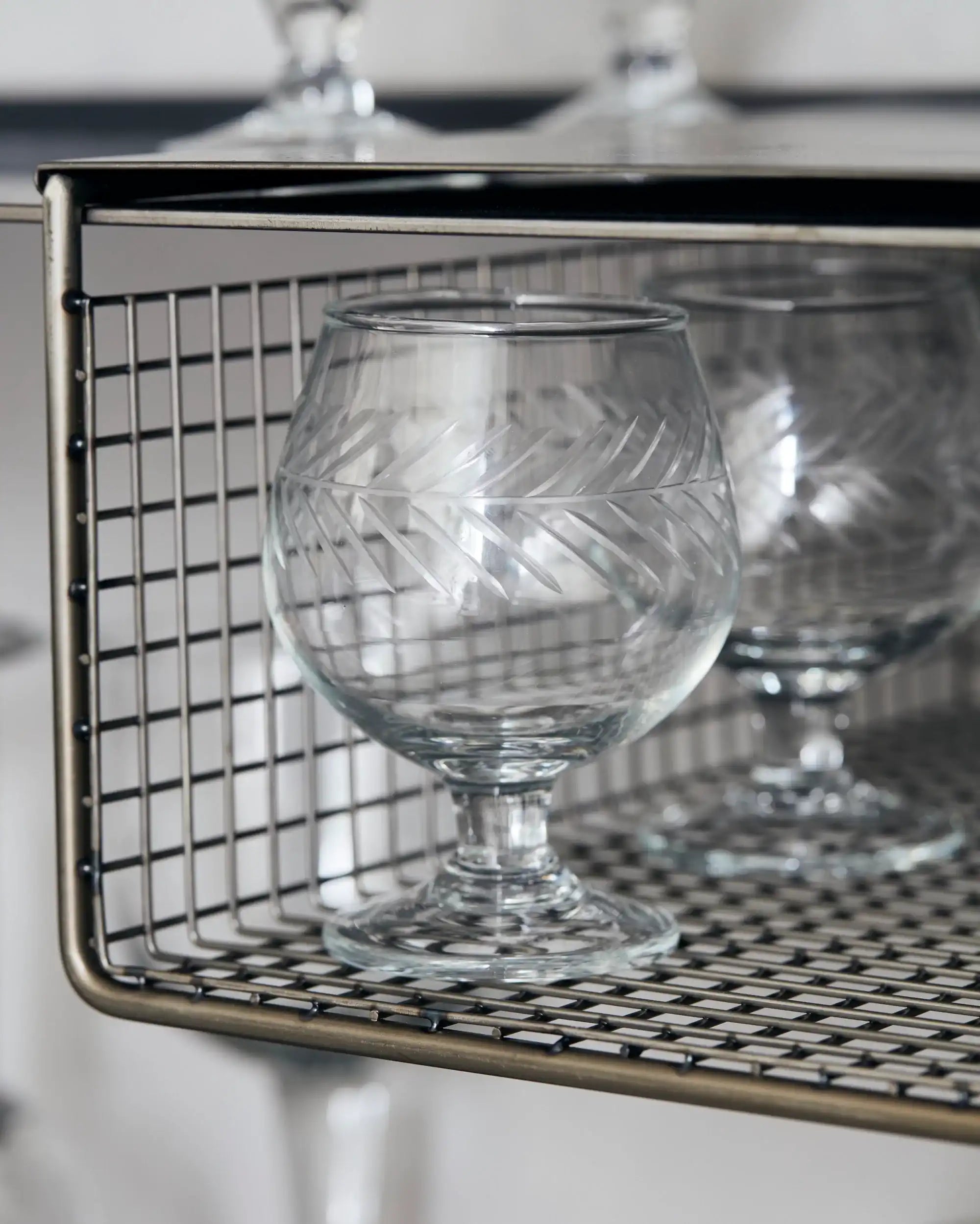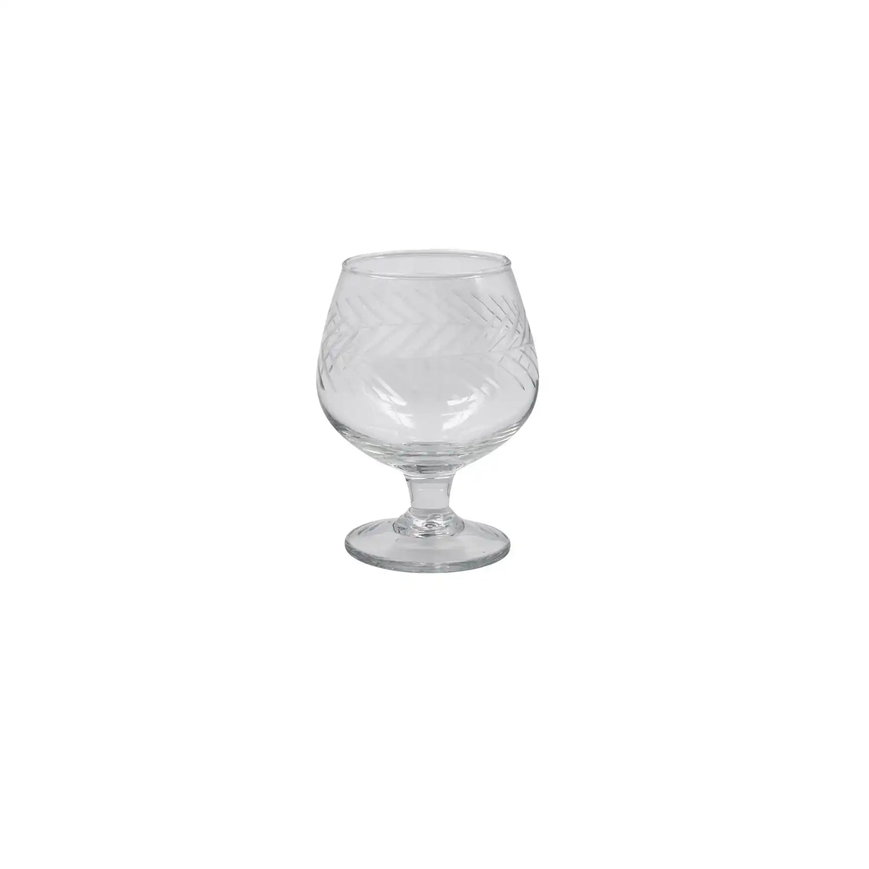 Made from clear glass and hand-finished with a finely etched pattern. The rounded base and narrower rim allow aromas to develop optimally. The glass is 11 cm high and has a diameter of 6 cm at the top and 7 cm at the bottom—exactly what you expect from a classic snifter glass.