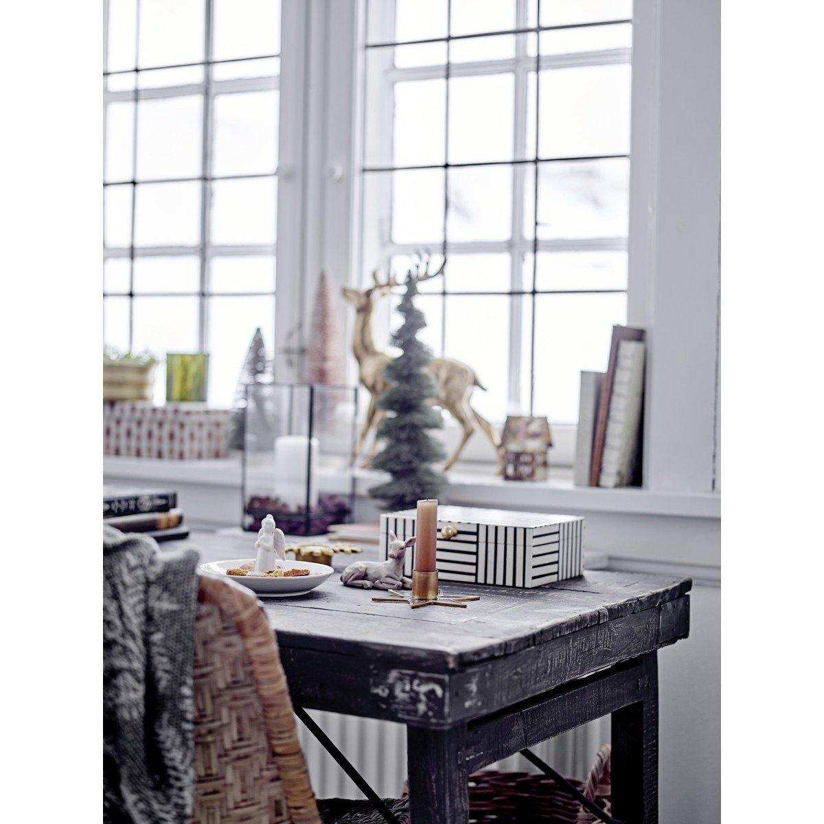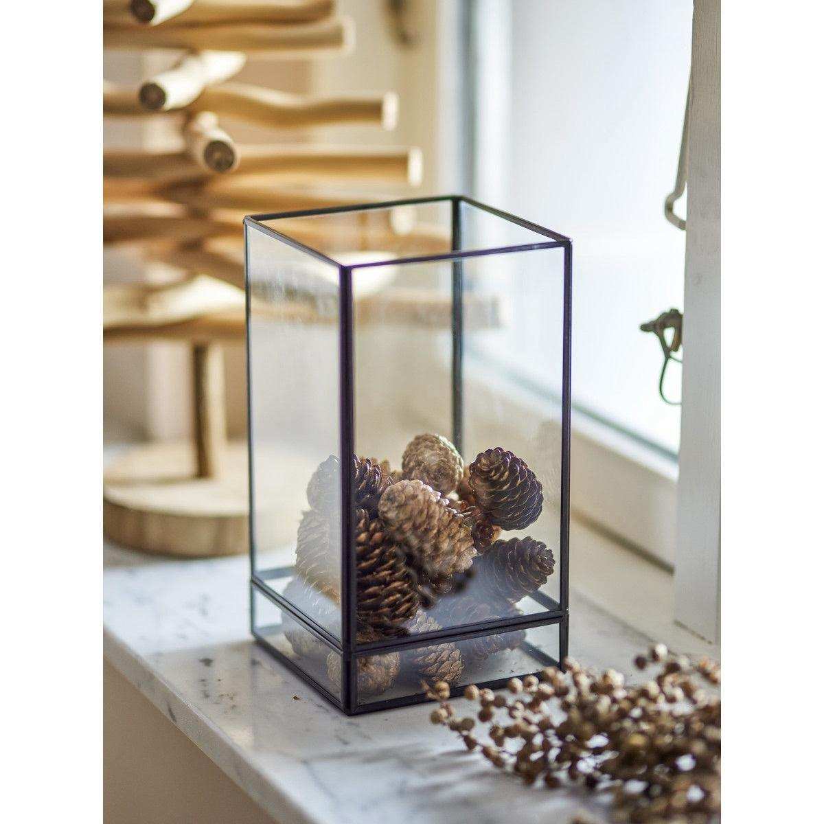 Bring warmth to the cold winter months with the Filula lantern from Bloomingville. This modern lantern combines glass with a stylish black frame, perfect for adding a cozy atmosphere to any room. Decorated with cones, ornaments and a block candle, the Filula lantern creates an inviting atmosphere in your home. The dimensions of 12x22x12 cm make it a striking piece that adds both elegance and warmth to your interior. Made of durable metal and glass, this lantern guarantees long-lasting beauty and atmosphere.