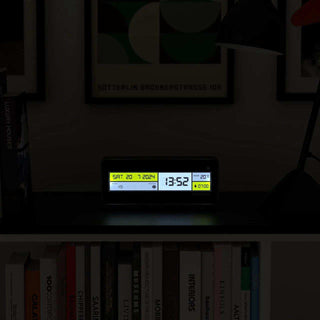 Waking up has never been so much fun! Discover the stylish black LCD alarm clock, which fits seamlessly into any modern interior. Its sleek, minimalist design is a real eye-catcher on your bedside table, while offering functionality in abundance.