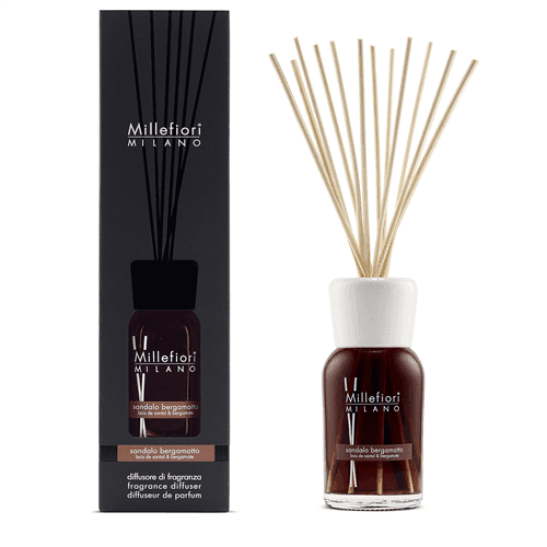 With the Millefiori Sandalo Bergamotto fragrance sticks of 500ml you bring a woody scent into your home. The Sandalo Bergamotto fragrance from the Natural collection is inspired by the scent of bergamot. The scent of bergamot is interwoven with the warm scents of wood with earthy tones.
