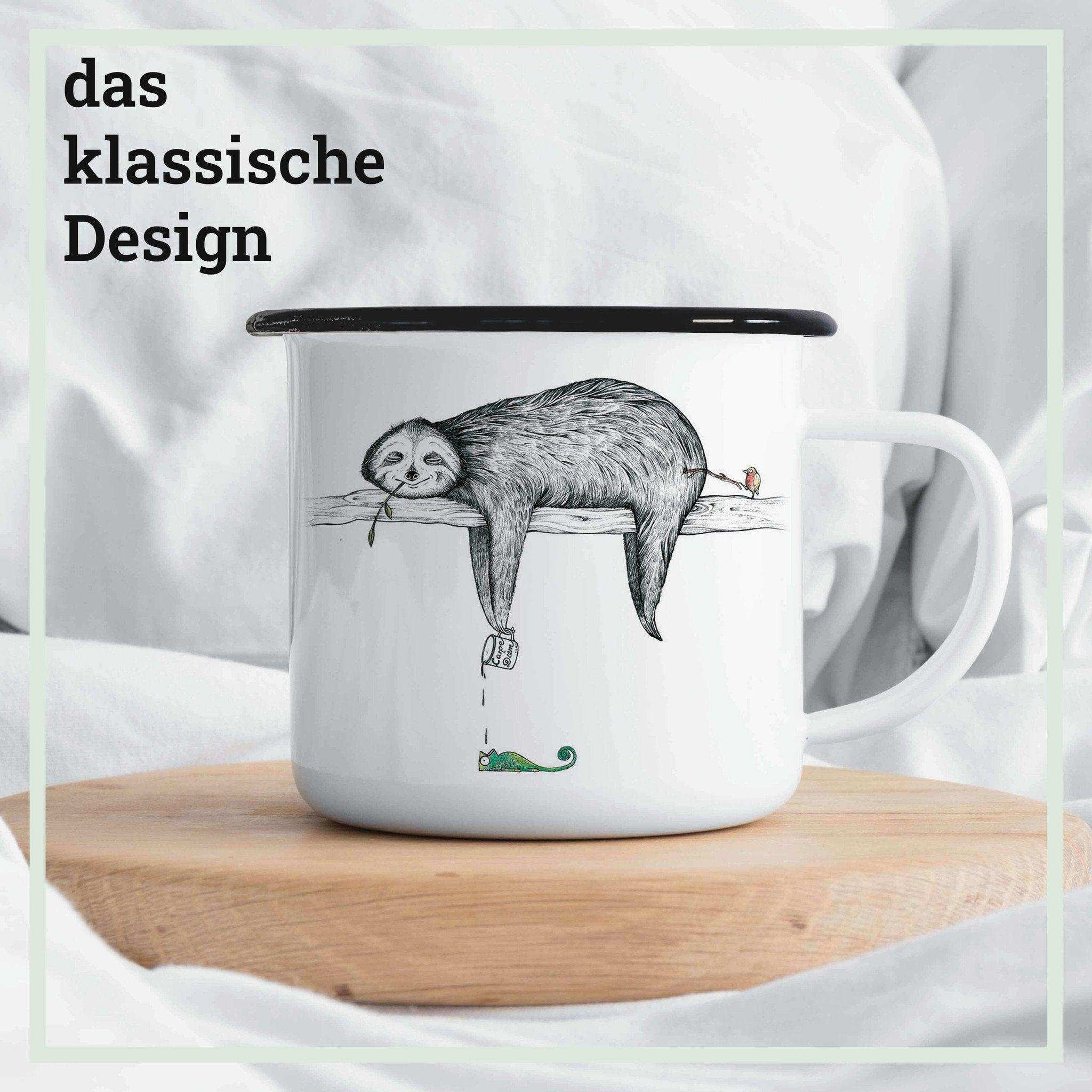 Will you now drink your coffee or tea from this rock-solid enamel mug by Ligarti? This mug with a unique print of a sloth on a branch is designed and handmade by Ligarti in Germany. They say the mugs are indestructible, and their lightweight also makes them easy to carry.