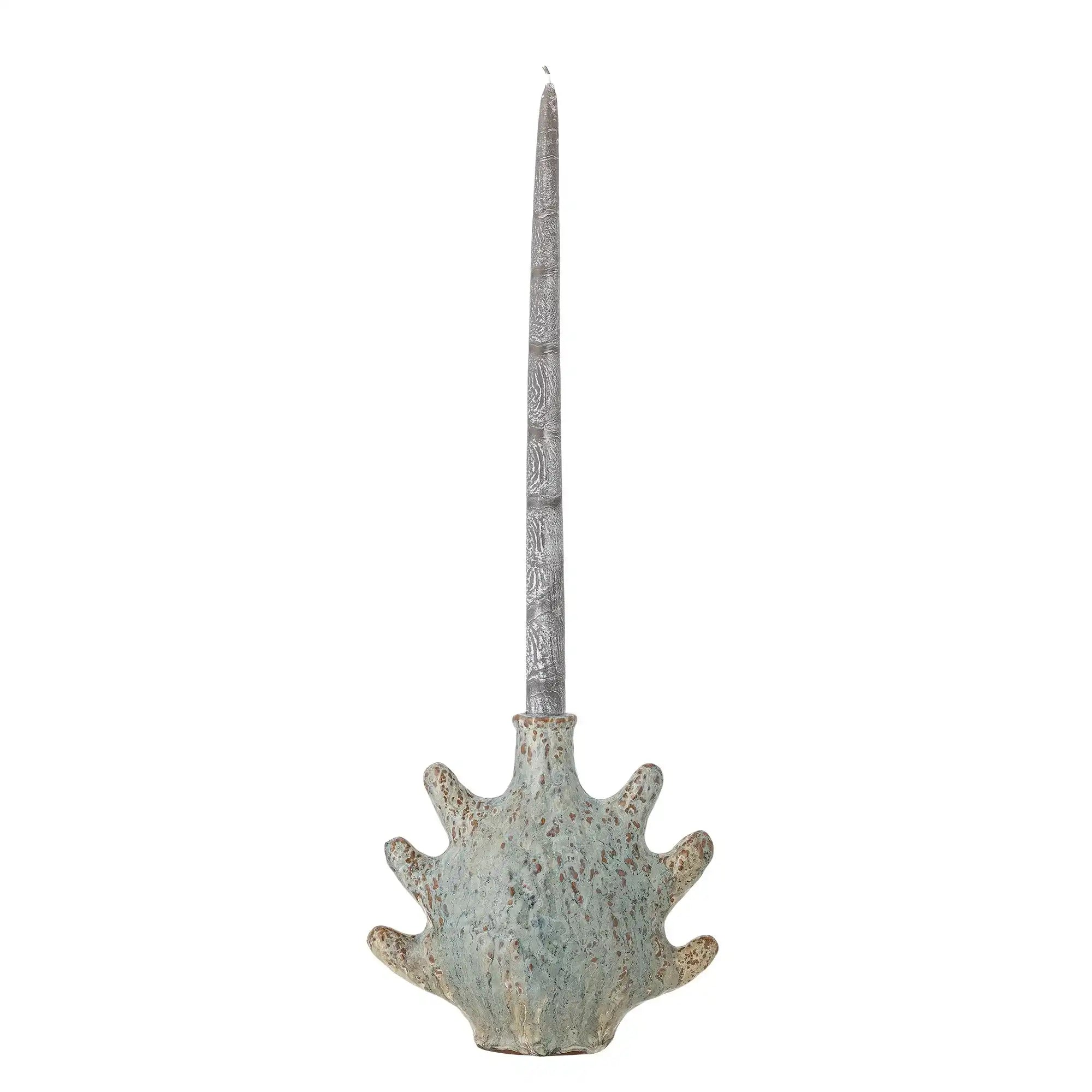 Details & material: Made from sturdy stoneware and finished with a reactive glaze that can show blue and dark tones, making each piece unique. The grey base keeps the look understated, while the curved shape adds a decorative touch. Dimensions: w × h × d 10 × 19.5 × 20.5 cm – compact, yet beautifully proportioned. Thanks to the material and shape, the candle holder feels solid and lets you add a stylish accent in no time.