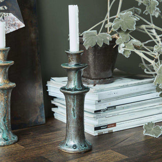 Discover the charm of imperfection with the House Doctor Candlestick Raag in a soothing green colour. At 26 cm high and 9 cm in diameter, this candlestick adds a subtle yet striking touch to your interior. The rough, almost unfinished glaze combined with its green hue offers a unique contrast to more streamlined, minimalist decor pieces.