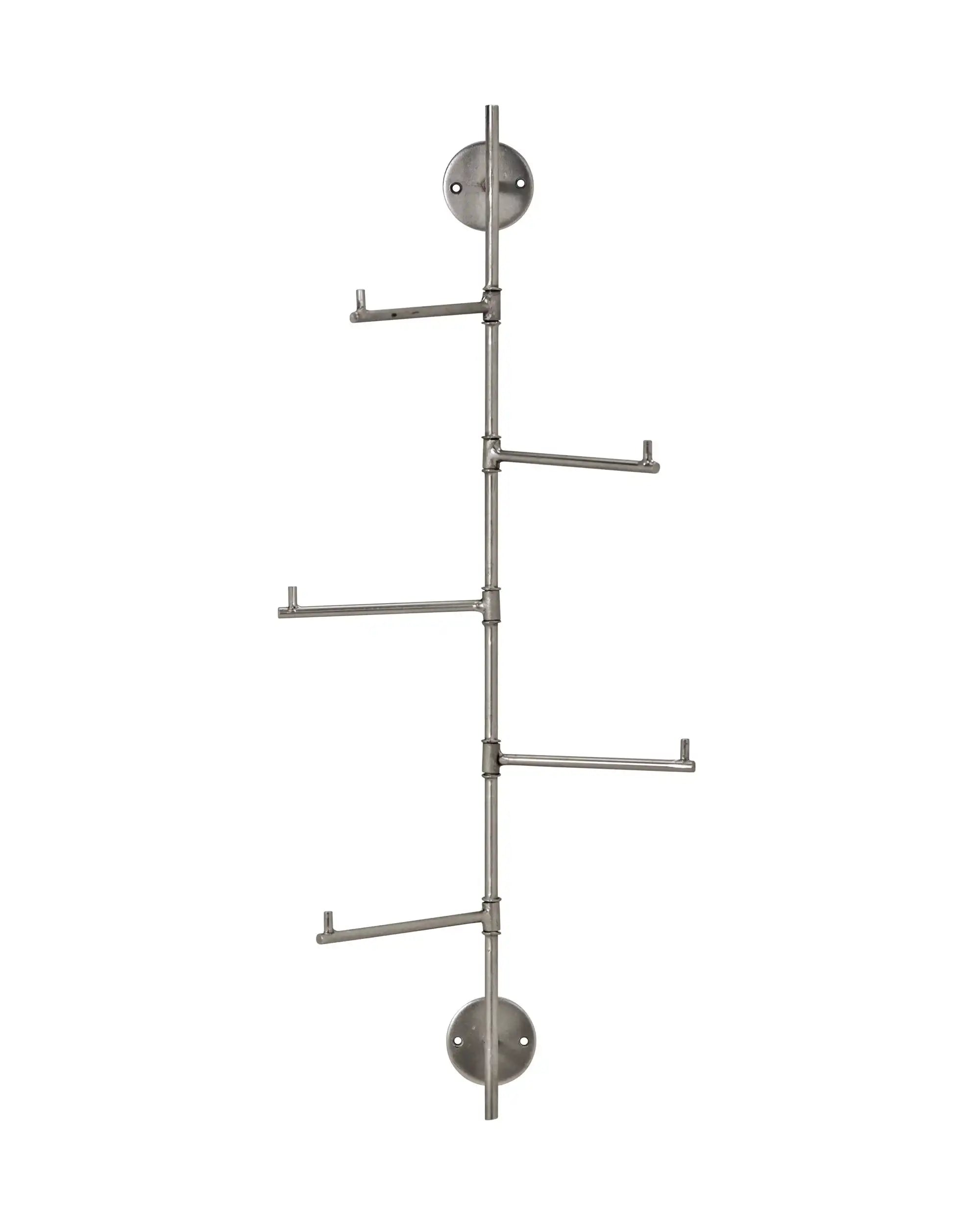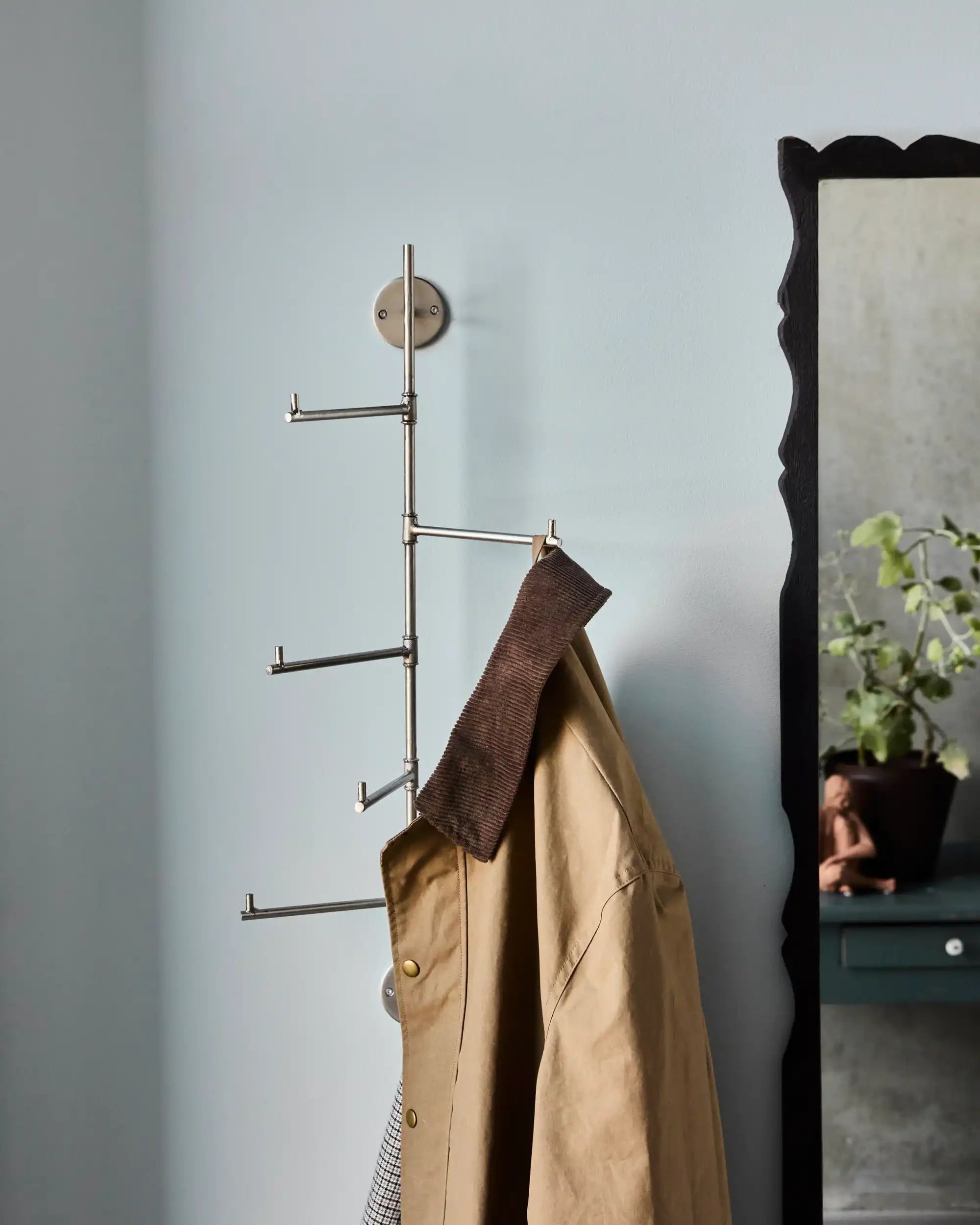 The Flex Coat Rack features five rotating hooks, allowing you to effortlessly hang coats, bags, or scarves. At 6.5 cm wide and 70.5 cm high, this coat rack is the perfect subtle focal point on your wall. Crafted from solid iron and finished with meticulous attention to detail, each piece is unique.