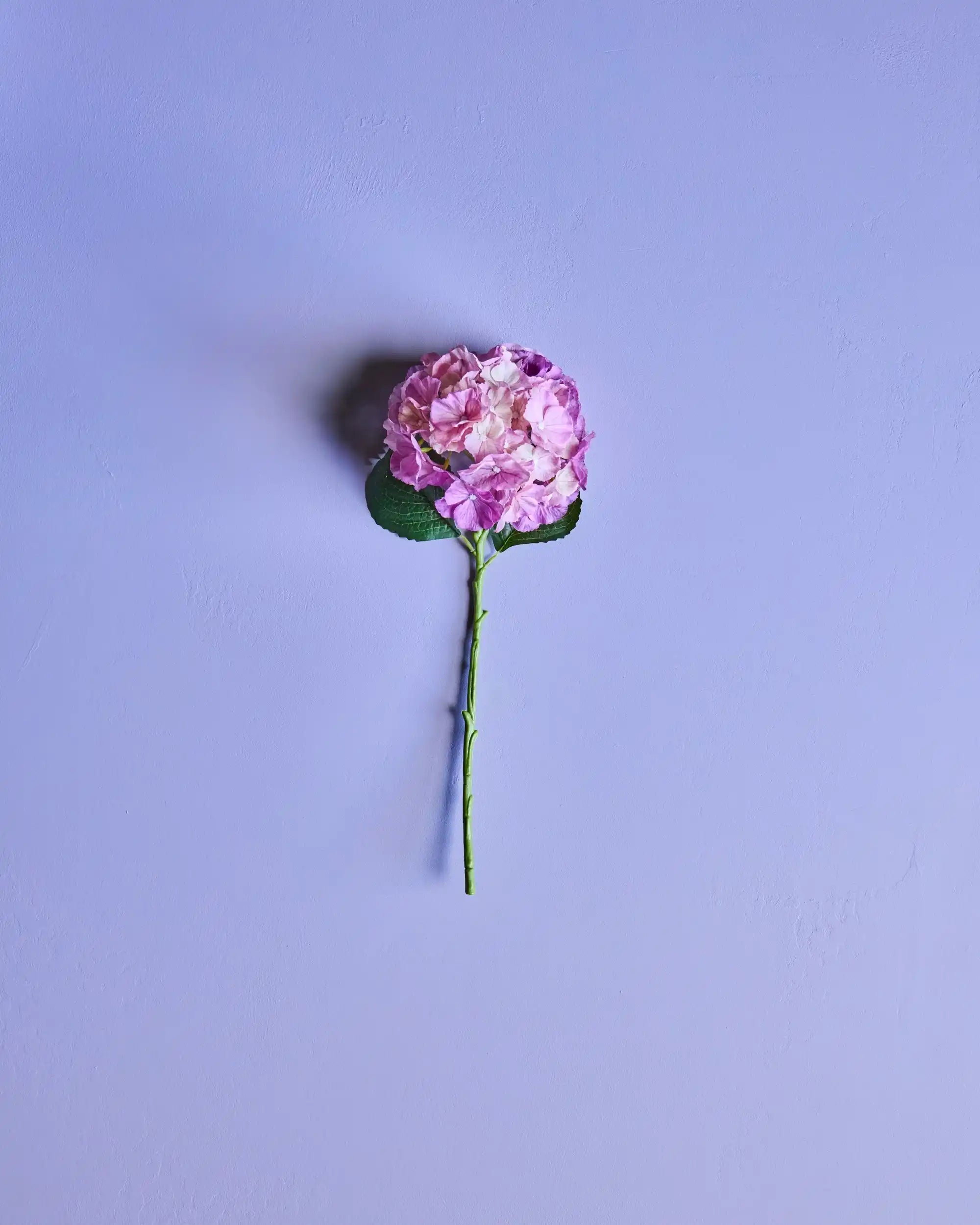The Hydrangea is 20 cm high and has a flower head with a diameter of 7 to 9 cm. It comes in a deep, muted red shade with a matte, lifelike finish. This gives it a serene and natural appearance—perfect for displaying on its own in a slim vase or combining with other stems for a fuller bouquet.