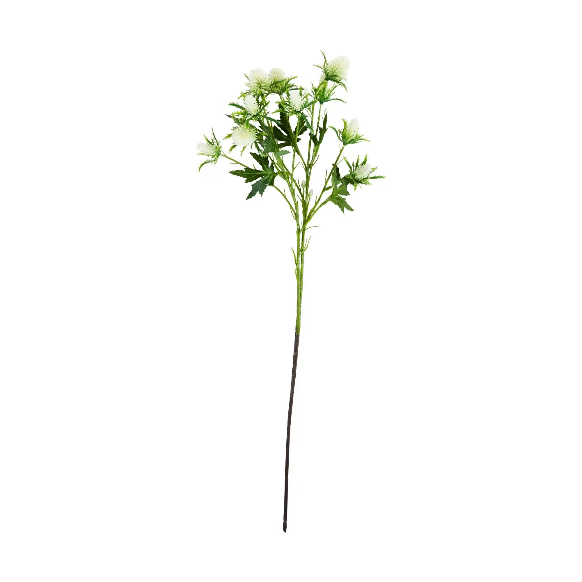 Give your interior a refined twist with this white eryngium artificial stem. The spiky flower heads subtly draw attention and add a sculptural flair to any setting. Whether you create a minimalist bouquet or place a single stem in a vase — this timeless piece brings structure and character to your home, without overpowering the space.
