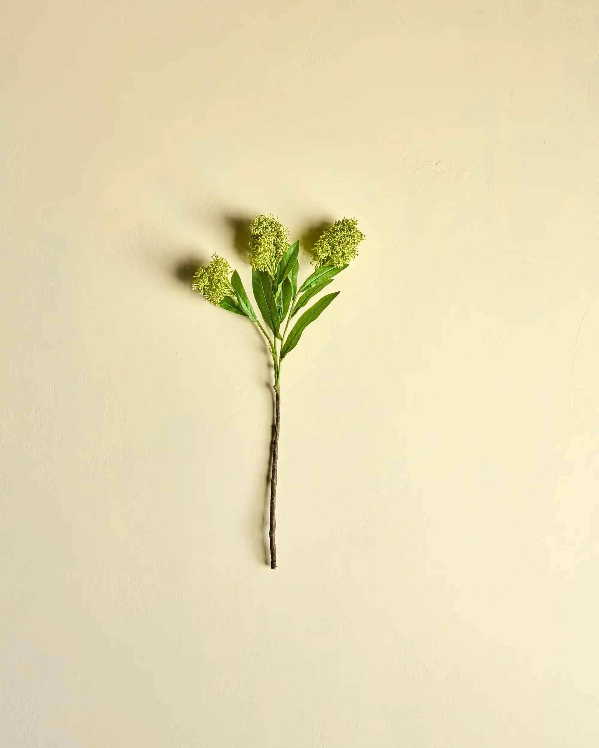 Add a fresh touch to your home with this artificial branch inspired by the Skimmia. The soft green shades and full, detailed flower clusters bring natural charm without the need for pruning or care. Perfect for anyone who loves greenery but has little time.