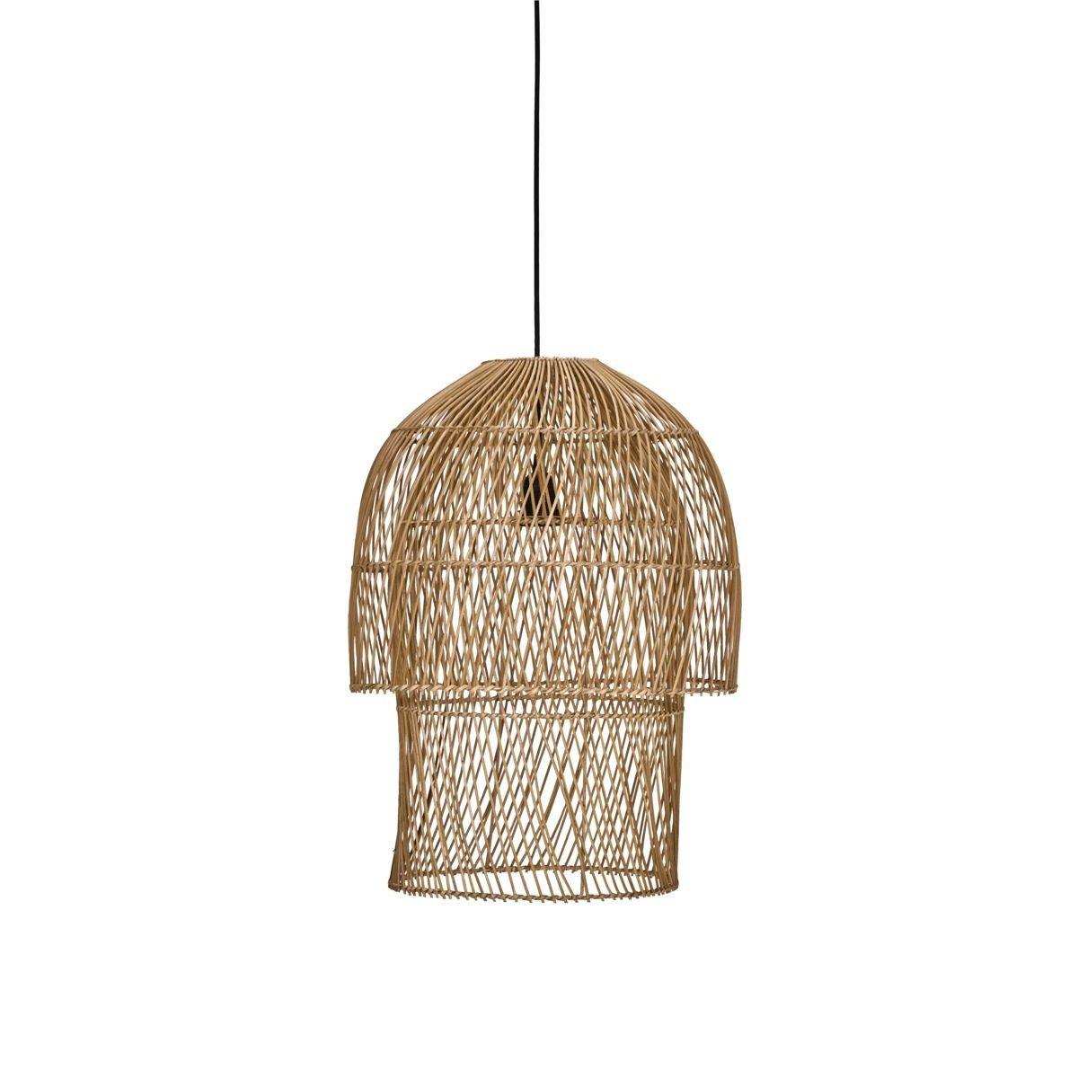 Bring a touch of natural charm to your interior with the House Doctor Getti Lampshade in natural, a trendy addition that will suit any interior style. This lampshade, with a diameter of 40 cm and a height of 55 cm, is made of rattan and will bring a bohemian twist to your home. The light that falls through the open swirl structure of the lampshade creates a beautiful atmospheric effect. Whether you are looking for a relaxed pendant light above your dining table or a lamp that adds an interesting silhouette to your living space, this design from House Doctor is an excellent choice. Please note that a cord with socket is not included, but the lampshade can easily be hung on an existing socket or you can purchase one separately.