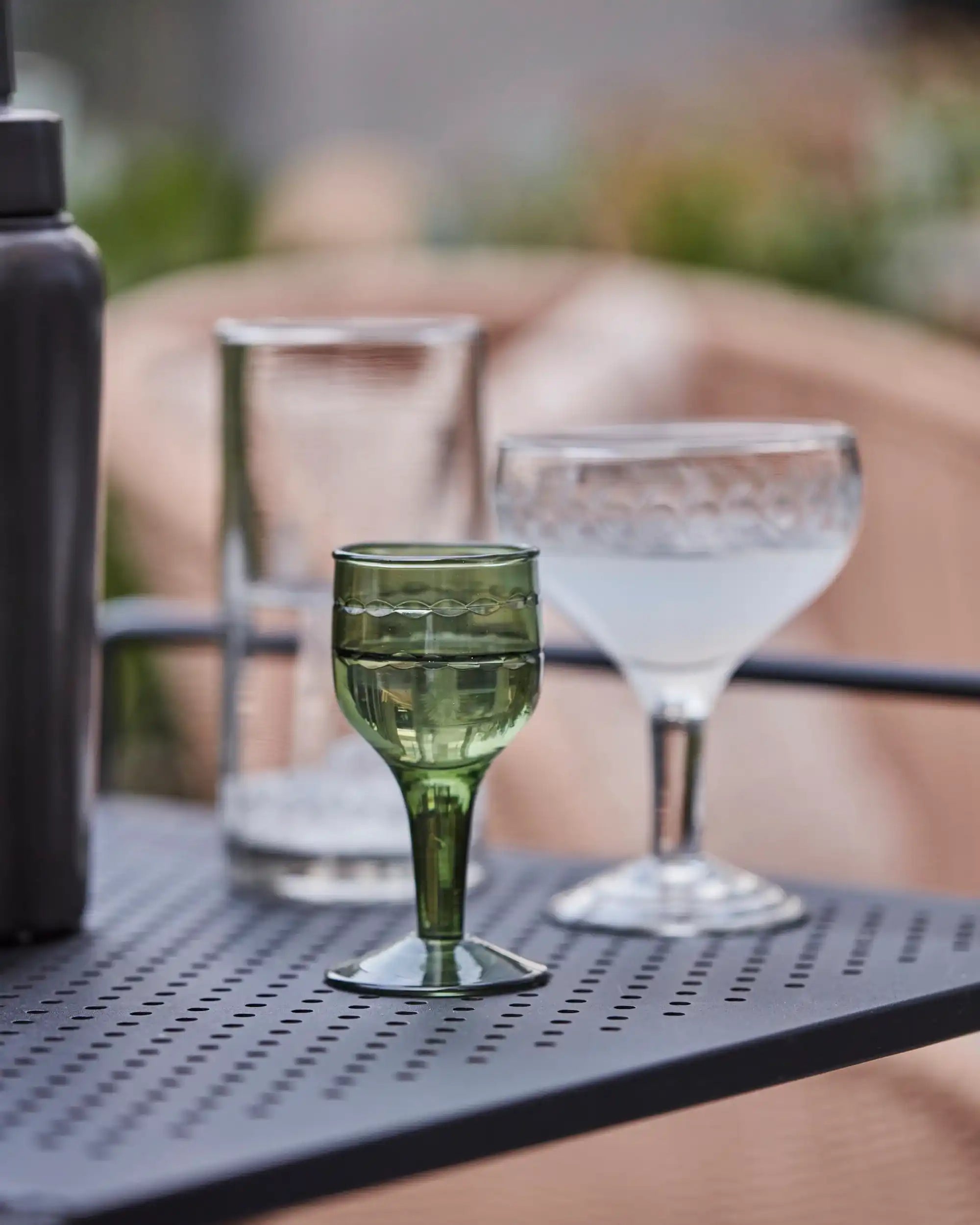 Tip: Combine this glass with other green glassware items for a calm, cohesive look, or pair it with clear glass for a playful contrast on your table. Perfect for a digestif like a liqueur or port.