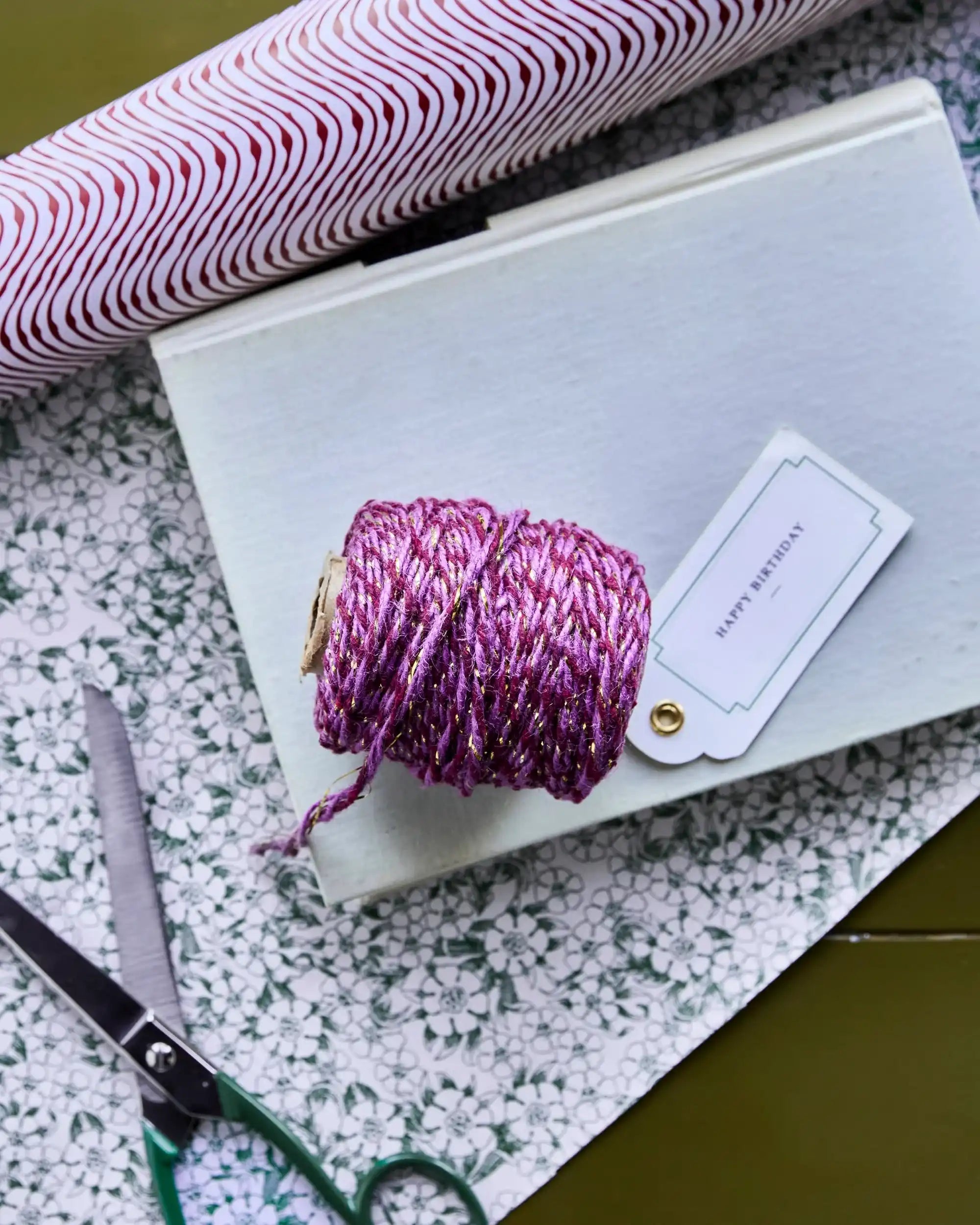 Add a unique touch to your interior or make any gift extra special with the Purple Ribbon from House Doctor. This luxurious purple ribbon is twisted for a striking texture and enhanced with subtle gold lurex details for a stylish, festive look. The jute and cotton blend creates a natural yet elegant look that fits perfectly in a modern and warm interior.