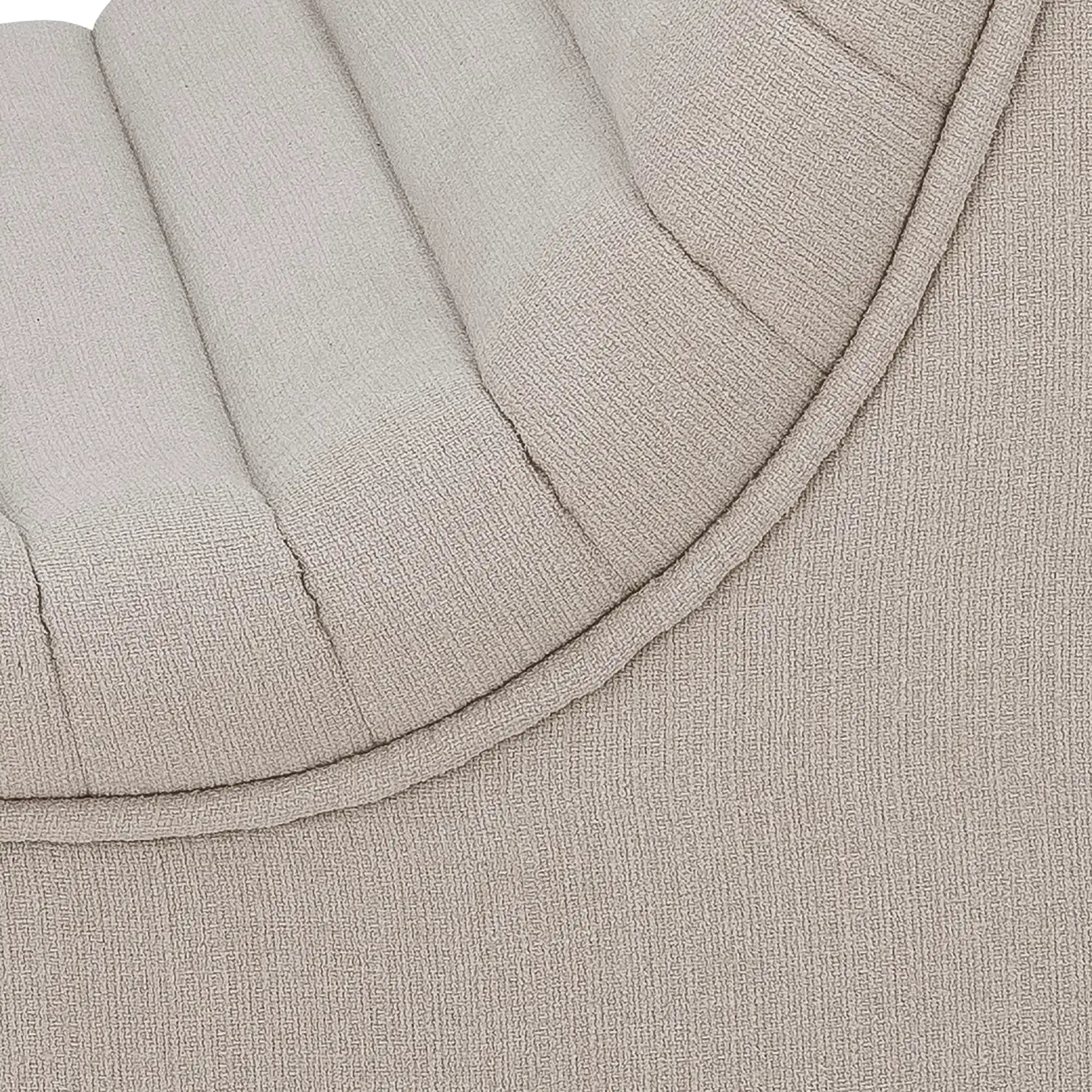 Details & Material: The Allure lounge chair is crafted from durable polyester and finished in a soft natural hue, making it a seamless fit for any modern interior. With generous dimensions of 95 cm wide, 73 cm high, and 79 cm deep, this chair offers ample space for relaxing. The refined panel structure and retro design give it a playful yet timeless look, while the durable material guarantees years of seating pleasure.