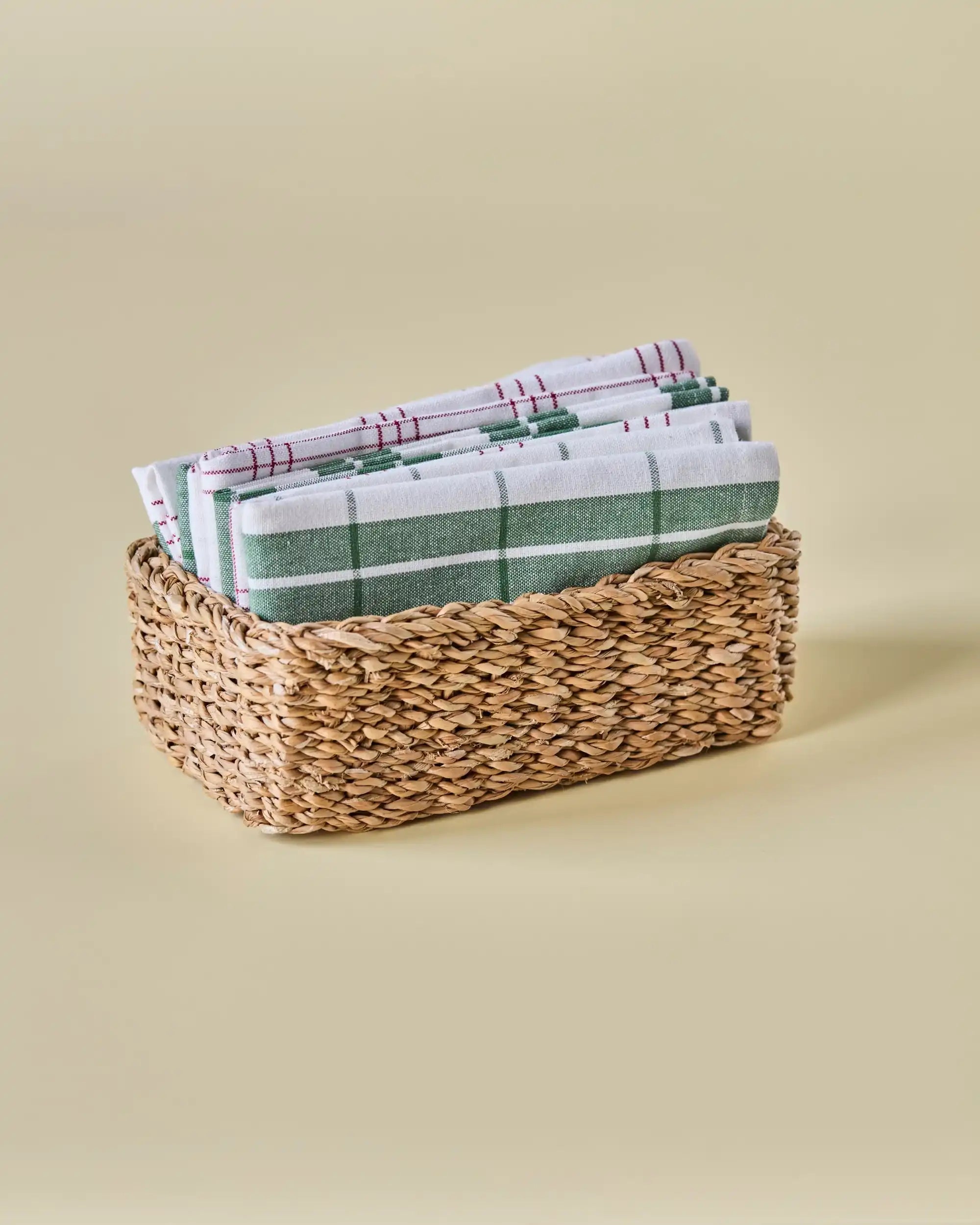 Place rolled linen napkins inside and place it in the center of the table during a dinner party, or use it as a natural storage unit on an open shelf. Combine it with other materials like ceramic or wood for a balanced, calm look.