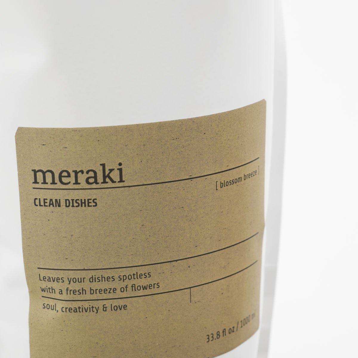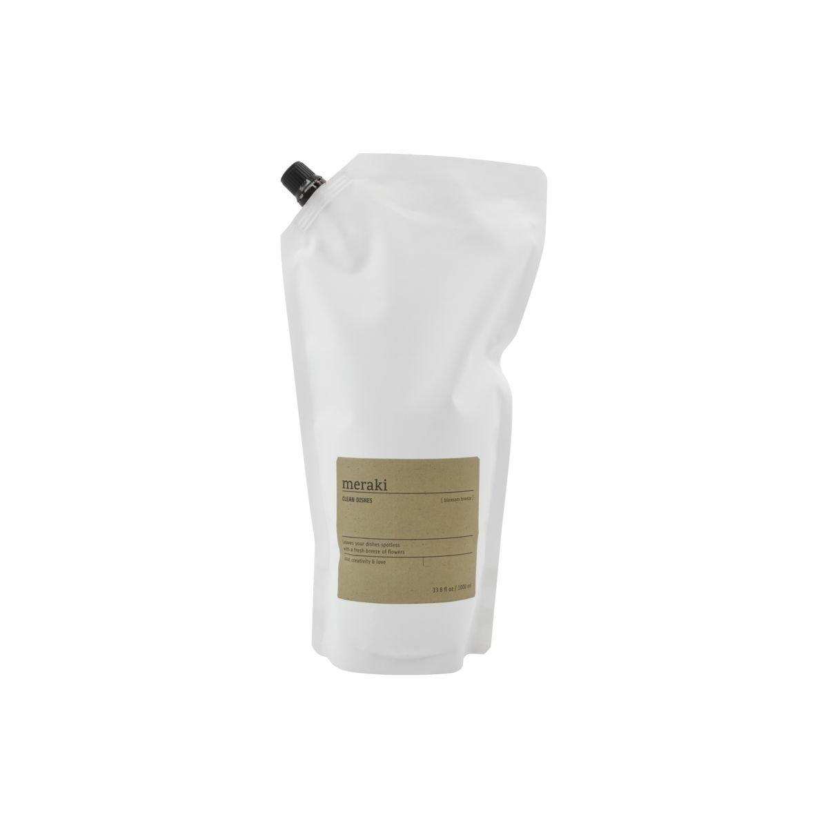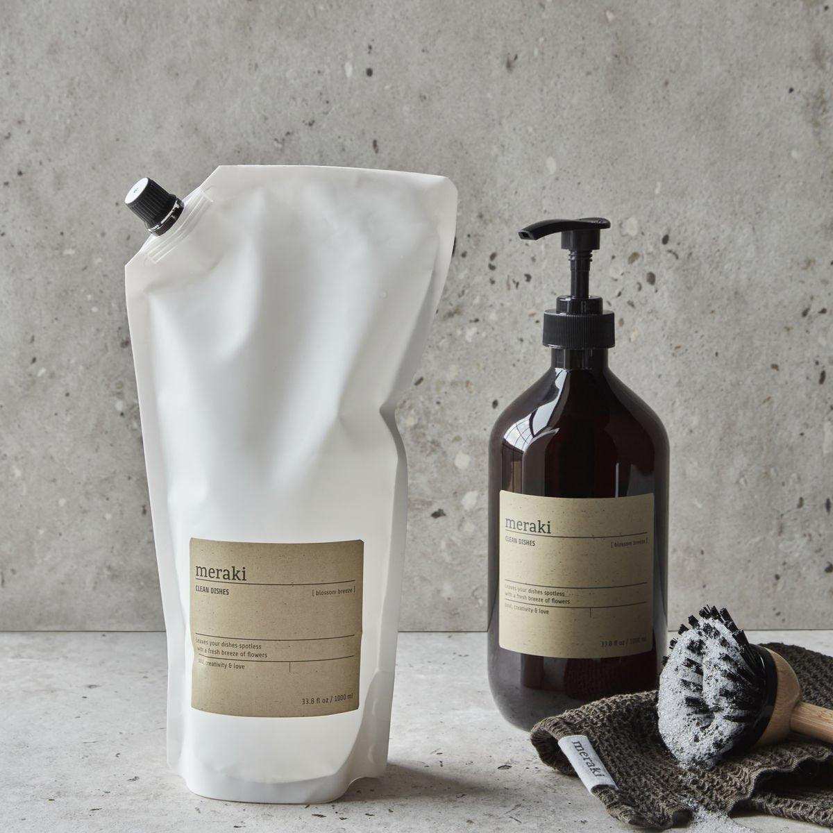 Easily refill your empty bottle with our Meraki Refill Dishwashing Liquid Blossom Breeze. This dishwashing liquid comes in a handy 1 litre refill bag and proudly carries the Nordic Swan Ecolabel. Blossom Breeze makes washing up a pleasure thanks to its soft foam and refreshing floral scent. The bag is made of recyclable plastic, making it an environmentally friendly choice. Use 2 ml of dishwashing liquid per 5 litres of water for optimal cleaning. This dishwashing liquid is not suitable for the dishwasher.