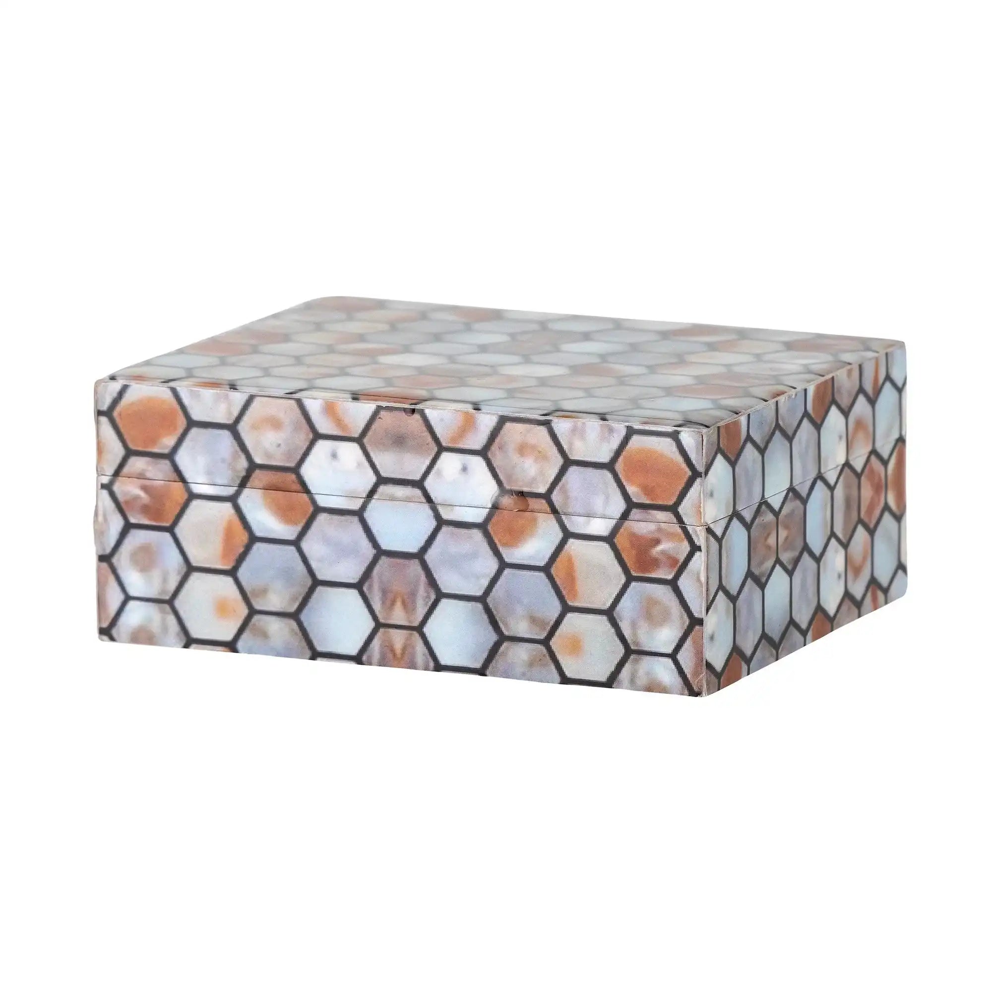 Details & material: The storage box is made of resin with a smooth finish that feels soft to the touch. The decorative pattern combines brown with blue accents for a stylish look. With w × h × d 10 × 5 × 13 cm, it’s spacious enough for rings, necklaces, or small treasures, yet compact so it fits easily on a shelf, tray, or windowsill. The material protects the contents, while the sleek design brings calm to any spot where you want extra order.