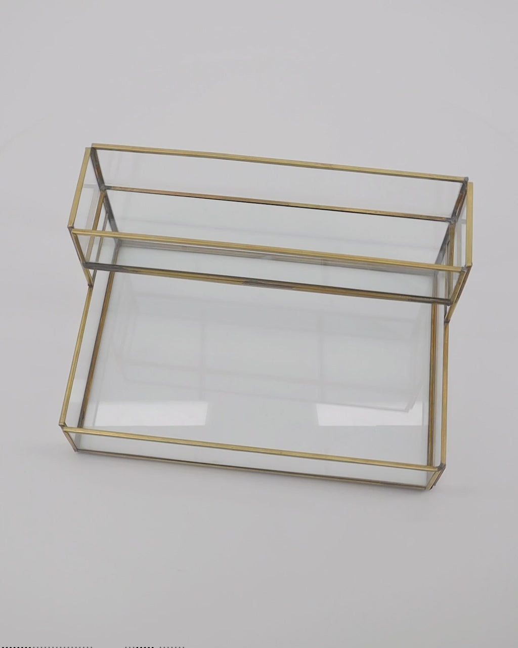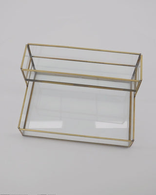 Measuring 21 cm deep, 30.5 cm wide and 15 cm high, the House Doctor Organizer Arca Brass is a compact yet spacious tray that stylishly stores your daily essentials. The high-quality glass combined with the brass creates a timeless look that fits into both modern and classic interiors. The two levels offer ample space to keep various items organised, from pens and notepads on your desk to jewellery and cosmetics in the bedroom.