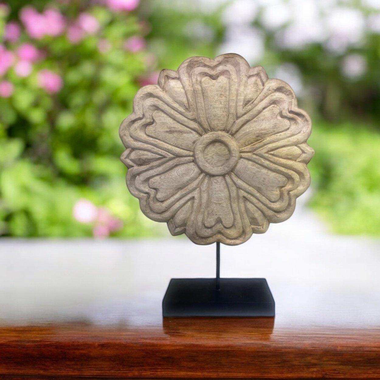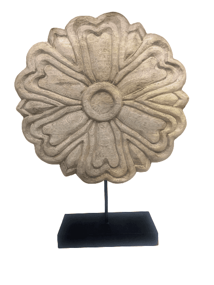 Natural wood carving with floral motif