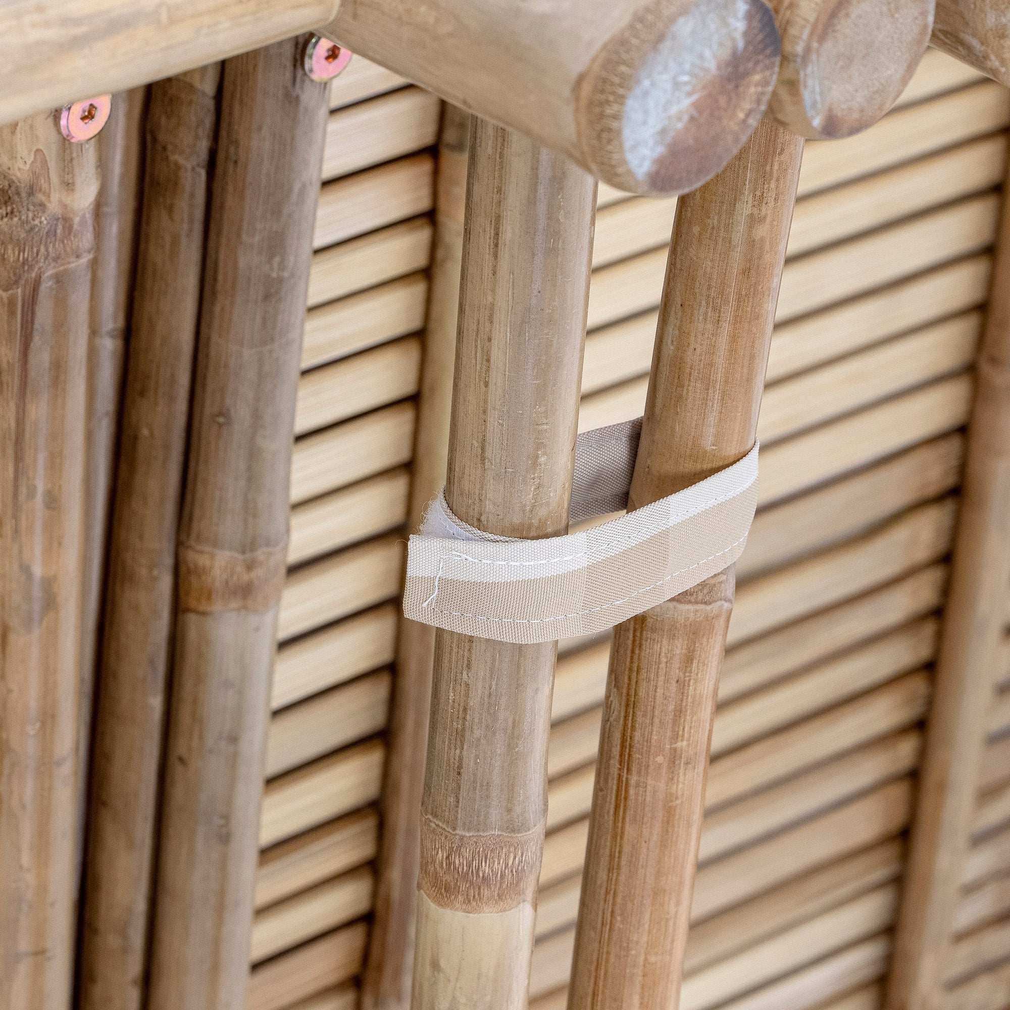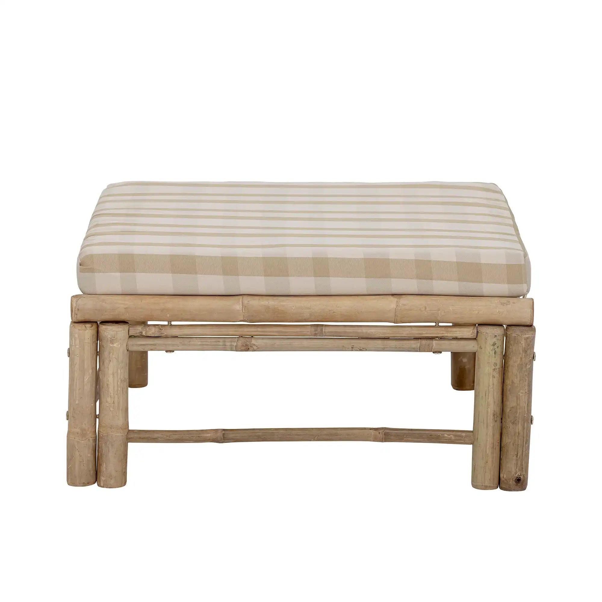 Details & Material: This ottoman from the Korfu series is crafted from sturdy bamboo and comes with comfortable polyester cushions in two removable covers: one solid and one checked. Thanks to the convenient hook-and-loop system, the modules can be easily connected, allowing you to create your own ideal configuration. With its wide 72 x 72 cm seat and natural color, this ottoman is a versatile addition to any outdoor space.