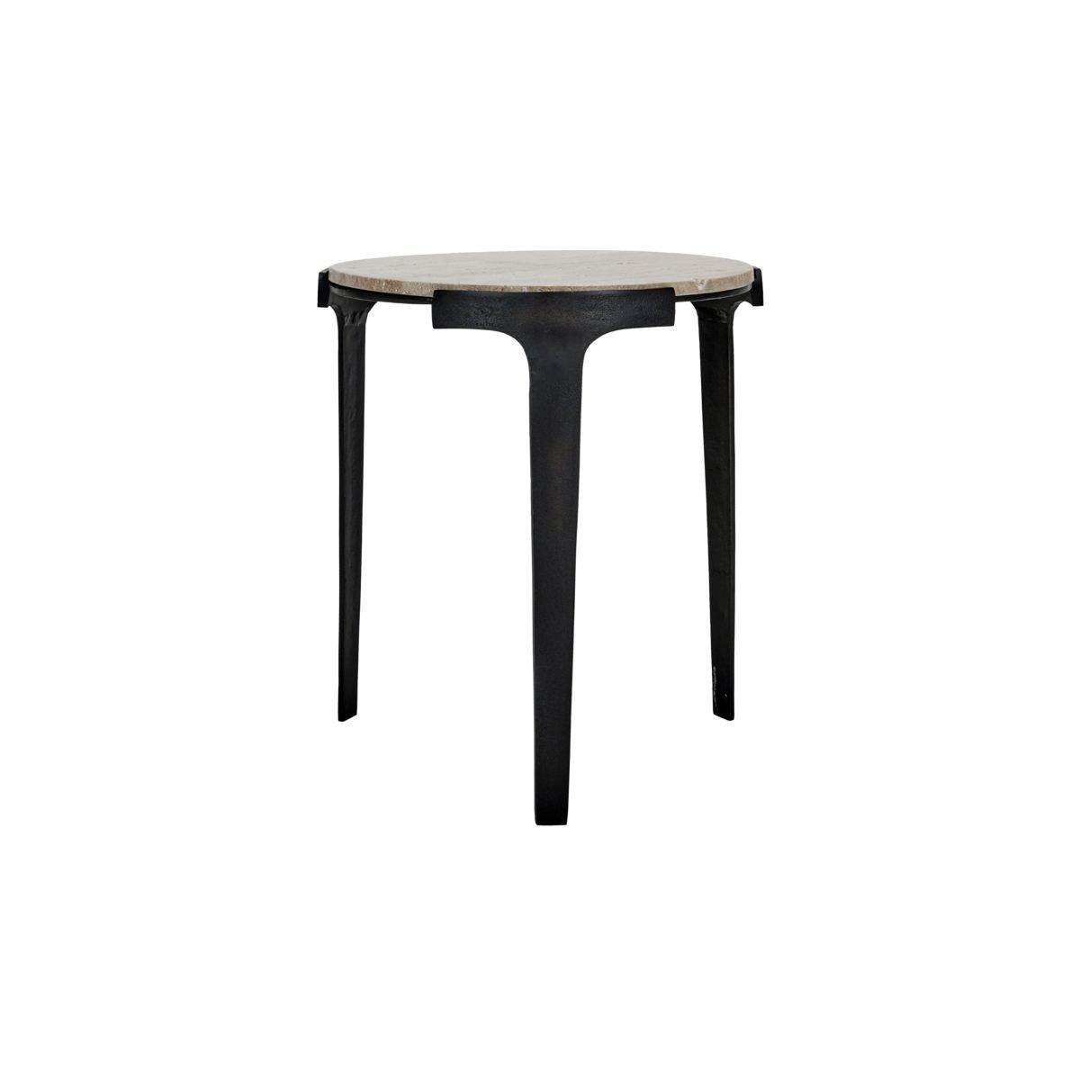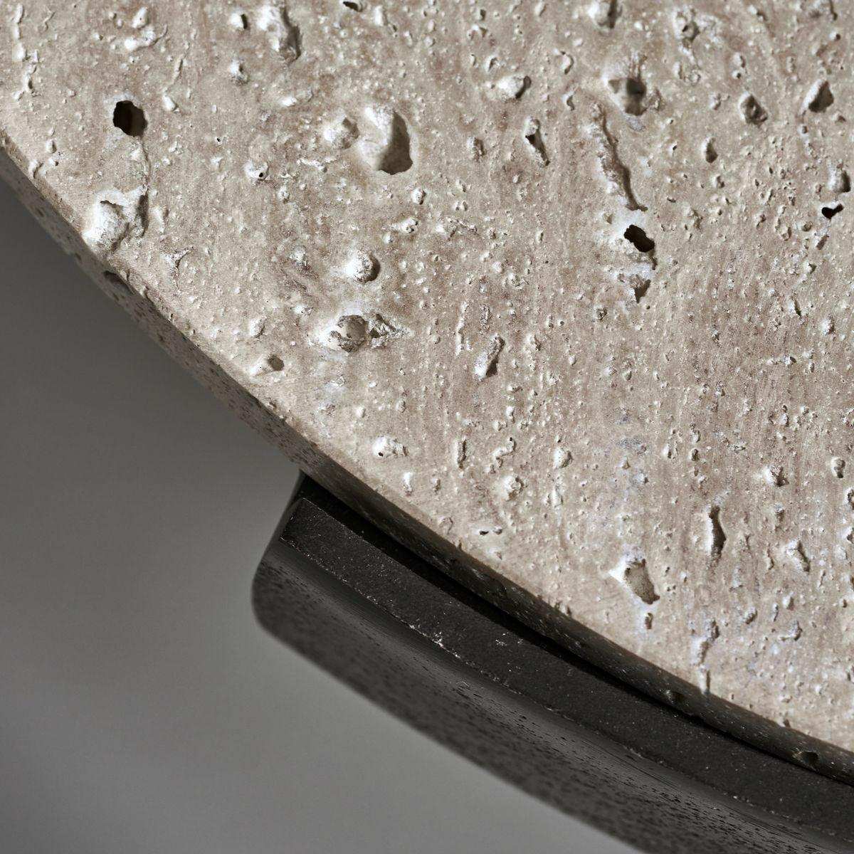 The House Doctor Coffee table Fula travertine beige 45cm is a stylish addition to any modern interior. This beautiful coffee table combines a luxurious travertine top with sleek, black aluminium legs, creating a refined and contemporary look. The unique character of the travertine, with its natural variations in colour and pattern, makes every table unique. Whether you have a minimalist or a warmer interior, the Fula coffee table will always add a touch of elegance to your living room.
