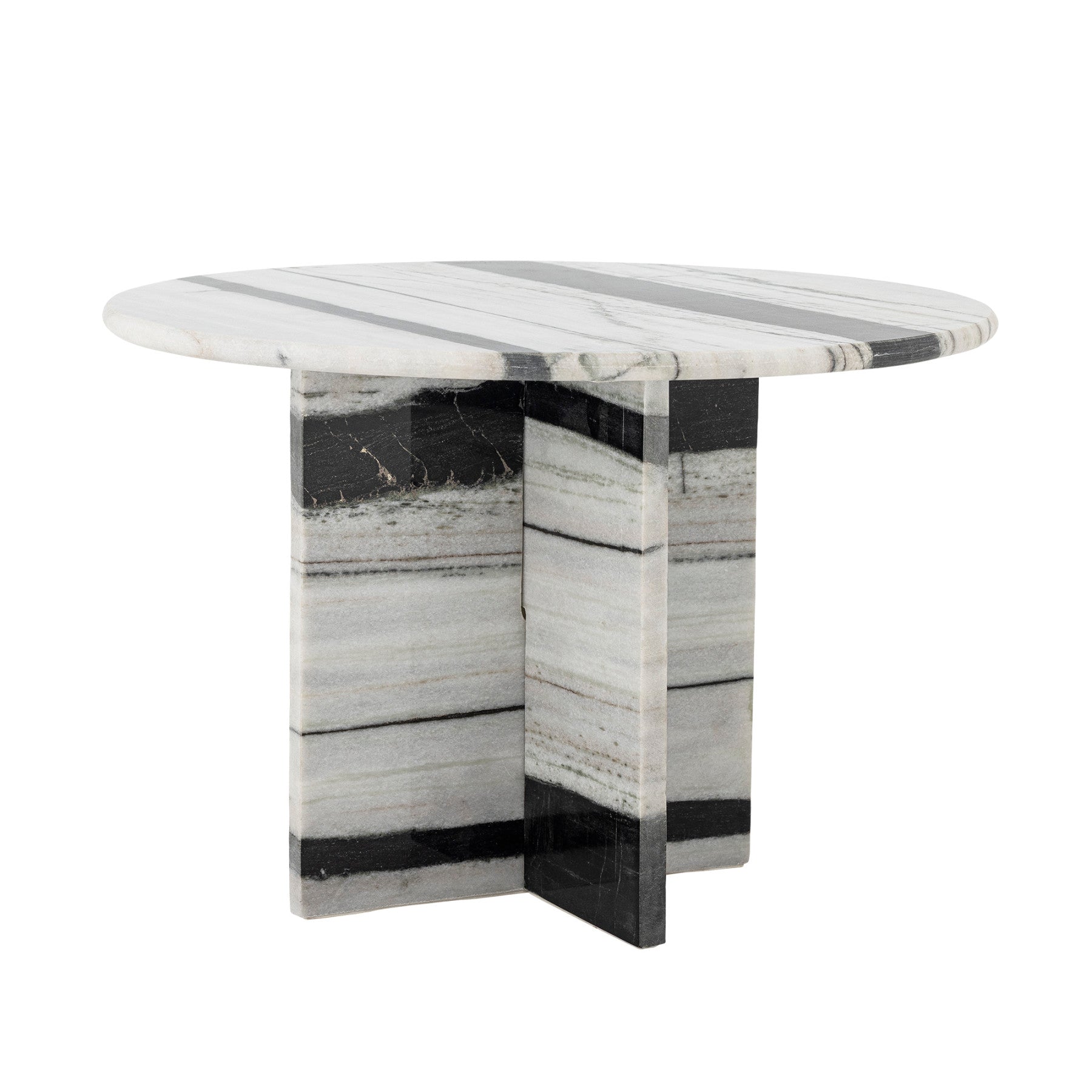 Why you will want the Rosito marble coffee table from Bloomingville: In a calm interior, materials make the difference. Rosito brings the refinement of white marble into your sitting room and at once gives the space a well-balanced foundation. The round top has deep black streaks that let the light marble speak with strength; subtle, graphic, and never busy. The sculptural base supports the top with calm, balanced lines, so your seating area looks like one harmonious whole. Thanks to the polished finish, the veining shows beautifully, and each table has its own pattern, so you bring something special into your home without going over the top. The result is a table that moves with ease from morning coffee to an evening with friends, and makes your interior feel just a touch more refined every day.