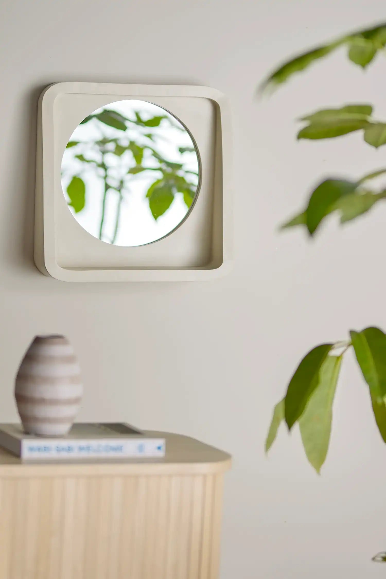 Details & Material: The mirror is crafted from high-quality polyresin in a natural shade, creating a stylish and timeless look. Its generous size of 39.5 by 10 centimeters and convenient shelf offer ample space for your favorite decorative items, such as scented candles, small plants, or beautiful accessories. You can hang or stand the Phoebe upright, making it a versatile addition to your home.