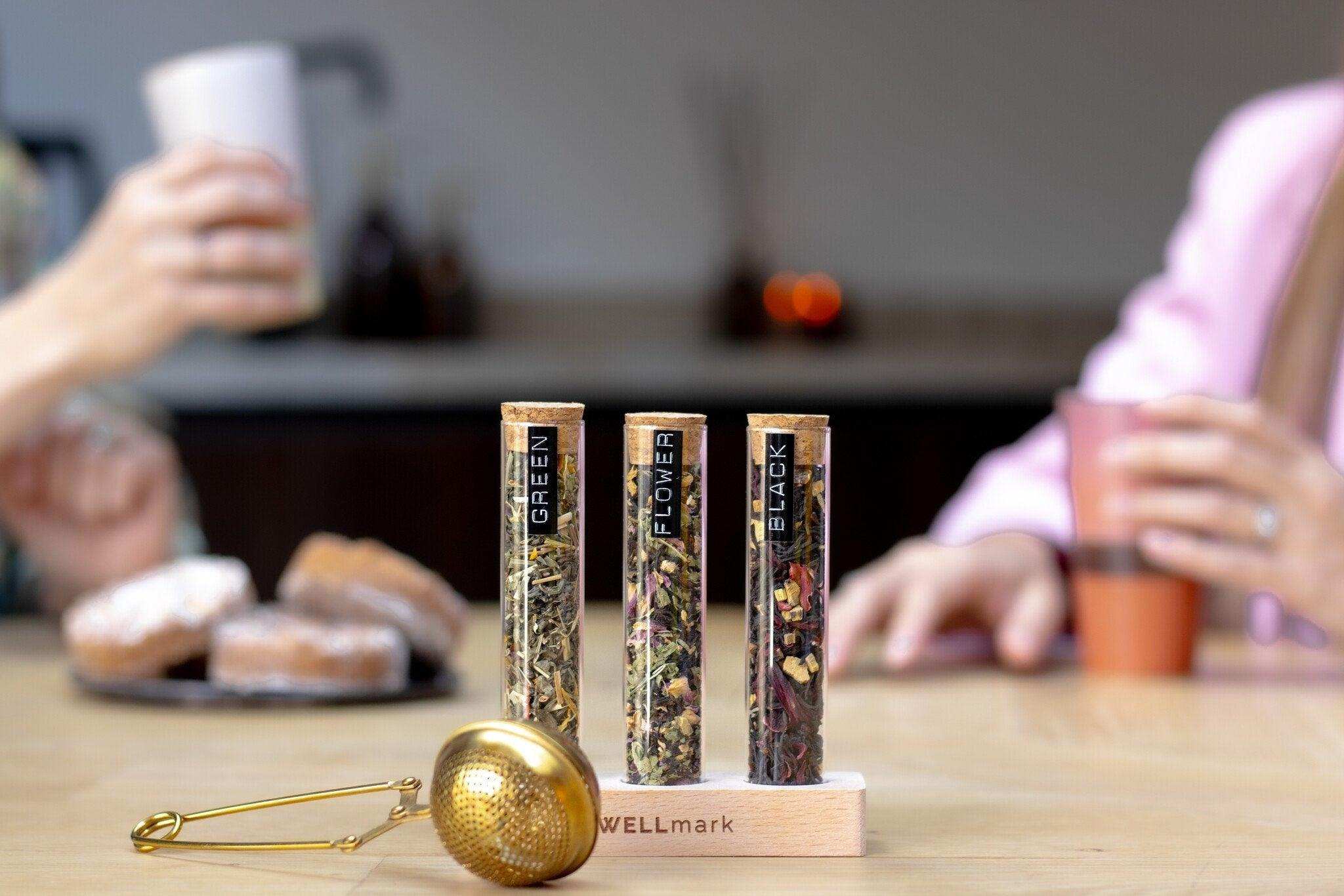 With the Wellmark Tea gift set 3 flavors you choose sustainability and quality. The glass holders can be easily refilled, so you can enjoy your favorite tea again and again. One tube of tea is enough to fill a tea strainer about seven times, which yields multiple cups of delicious tea. These reusable holders and the matching wooden holder ensure that you not only enjoy the tea, but also contribute to a better environment.