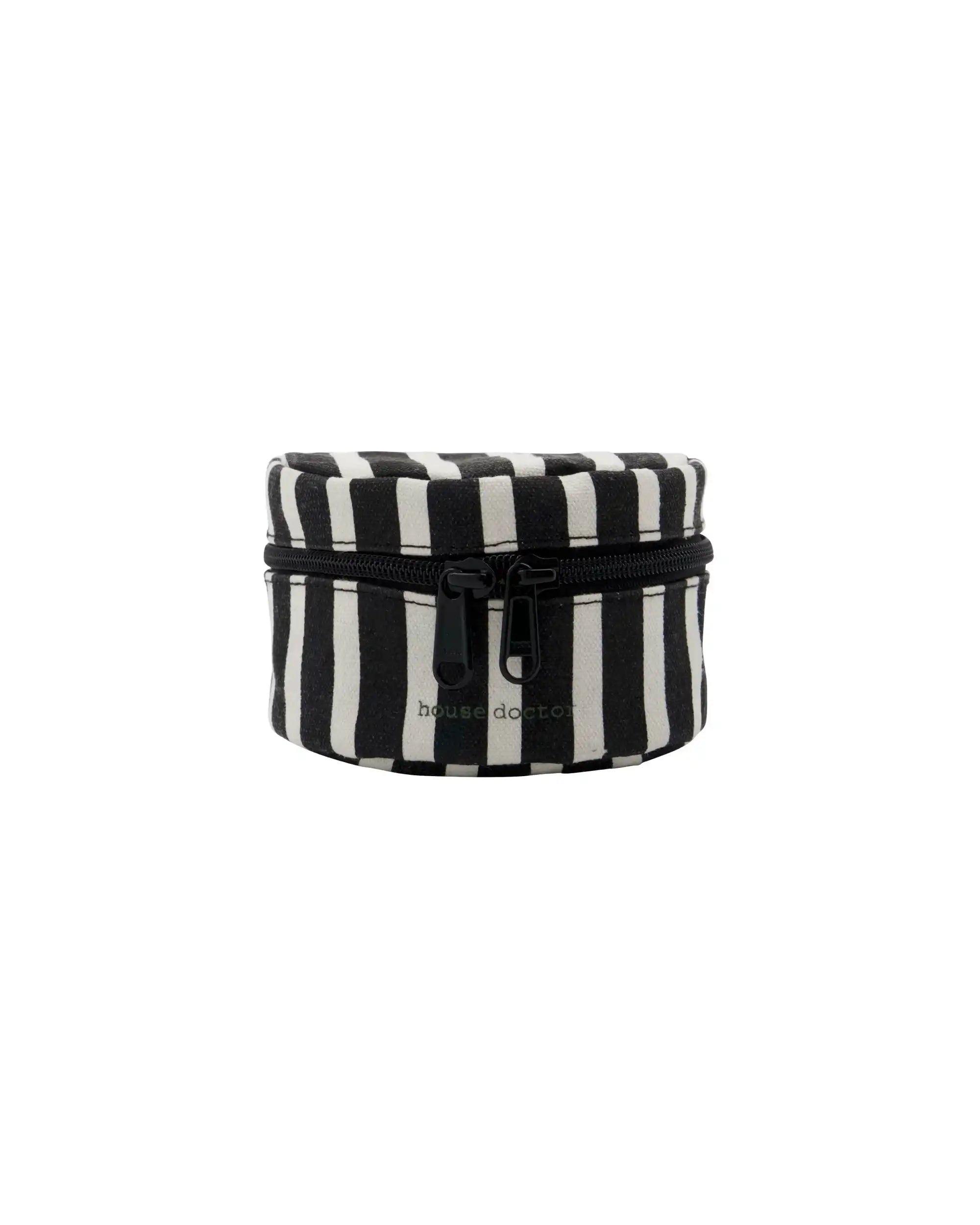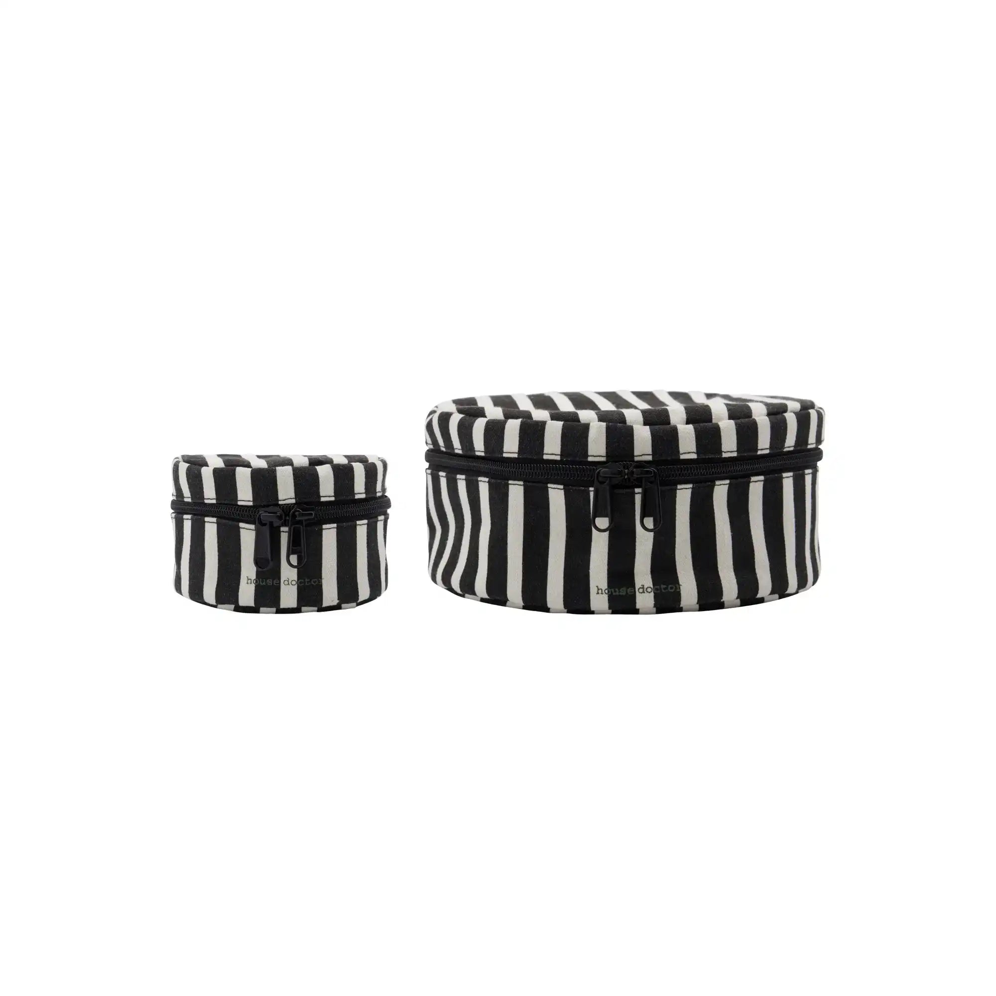 The set consists of two boxes in different sizes. They are made from a sturdy blend of polyester, cotton, and polyethylene, and close securely with a practical zipper. The small version is 7 cm high with a diameter of 11 cm, while the larger one is 9 cm high with a diameter of 20 cm. Ideal for neatly storing scarves, cables, or small accessories.