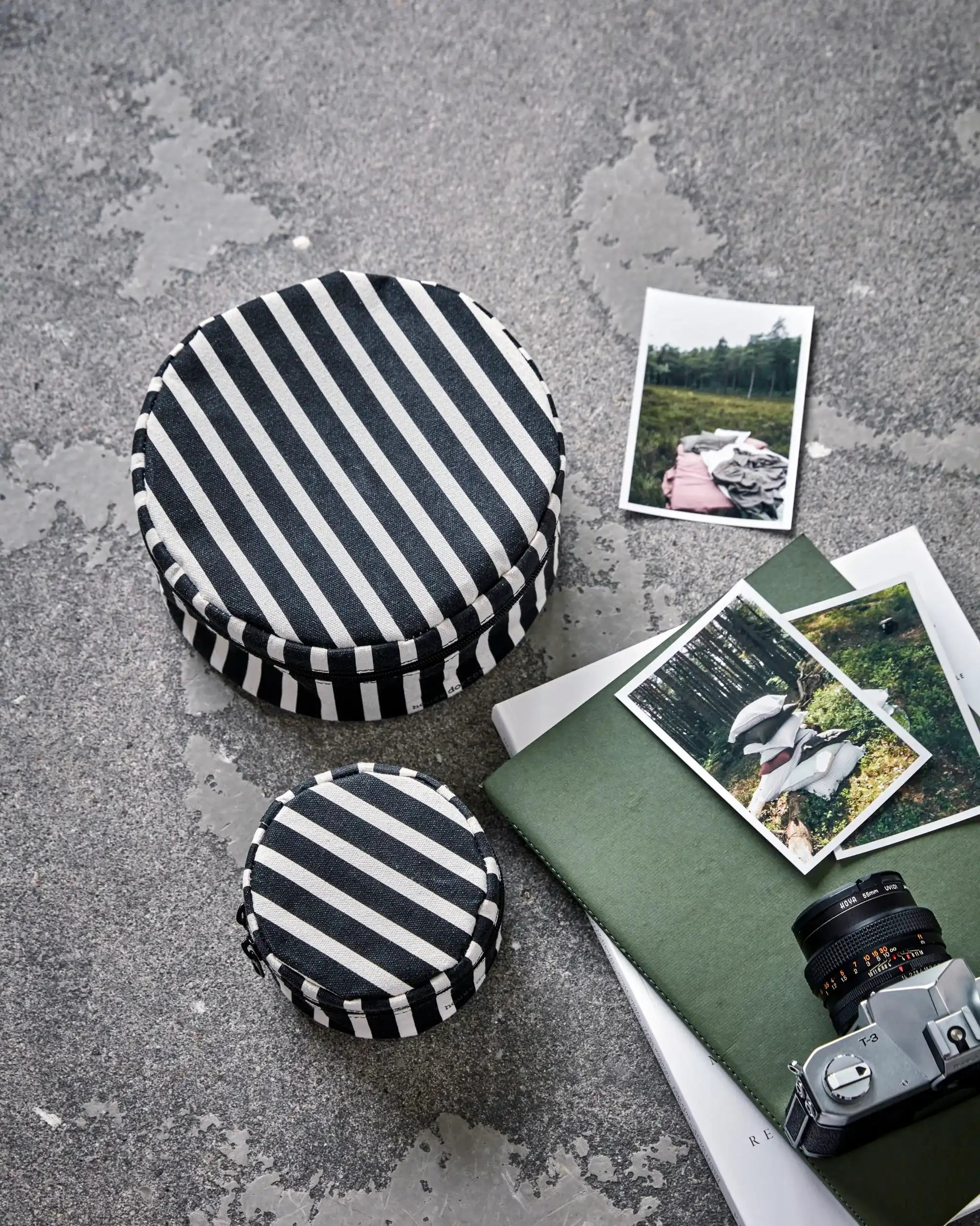 Looking for a tidy home with a modern look? These stylish storage boxes are exactly what your interior needs. The contemporary stripes in black and off-white add a graphic touch — perfect in an open cabinet, on a shelf, or under the bed.