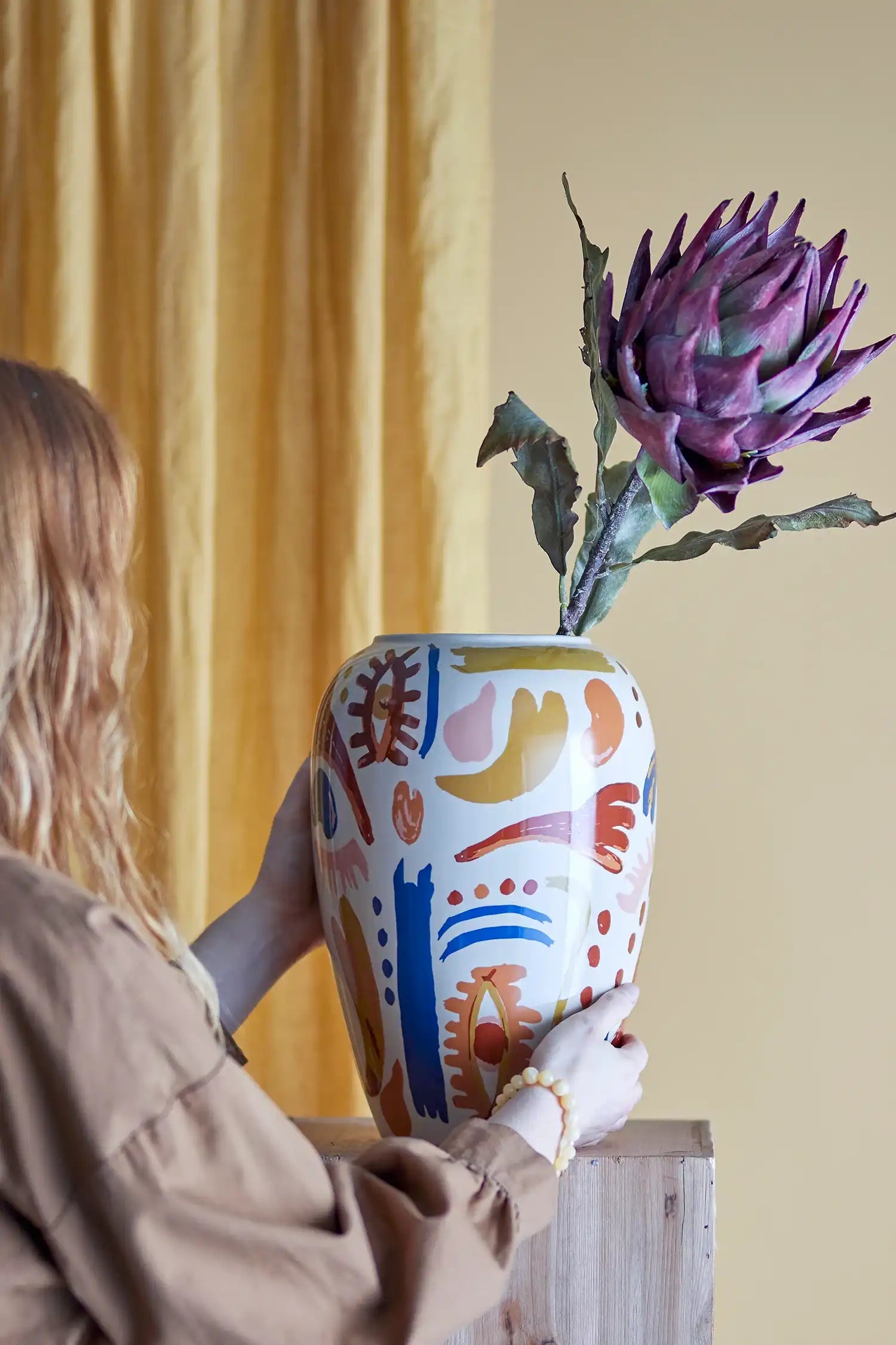Why you'll want the Horus orange earthenware vase: This striking vase from Bloomingville instantly brings warmth and character to your home. The expressive pattern and unique color scheme make this vase a focal point anywhere – whether you choose it for a fresh bouquet or display it purely as a piece of art.