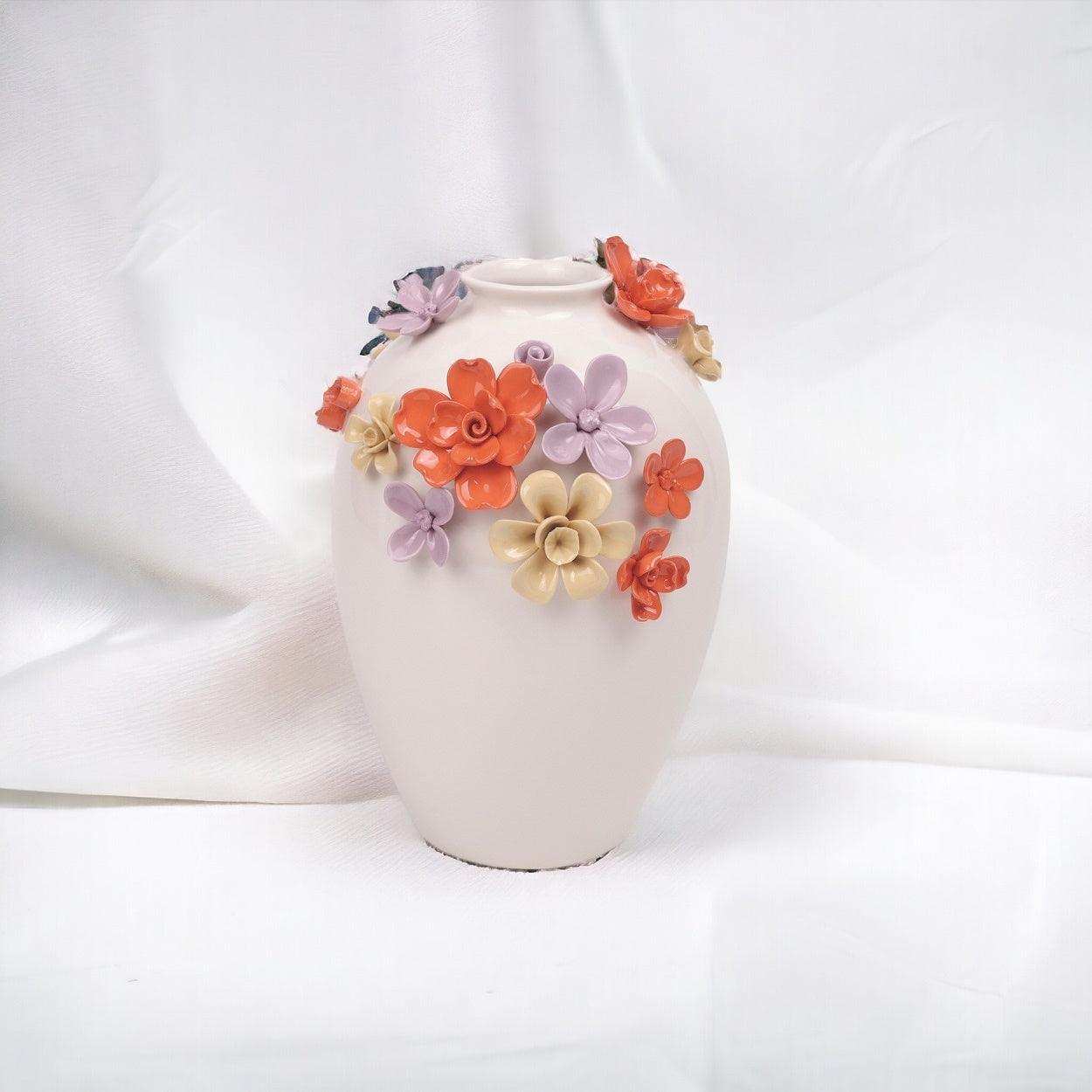 Bring passion and warmth into your interior with the Flowers vase by House of Nature, resplendent in red with handmade earthenware flowers in shades of red, pink and purple. This vase, with a height of 15 cm and a diameter of 12 cm, is perfect for presenting a small bouquet and enriches any space with a romantic and stylish flair.