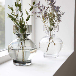 Bring a contemporary and stylish look to your interior with the beautiful Lowa vase from House Doctor. Made of colored glass in a beautiful smoky gray shade, this vase is a beautiful decorative piece that gives your interior an elegant touch.
