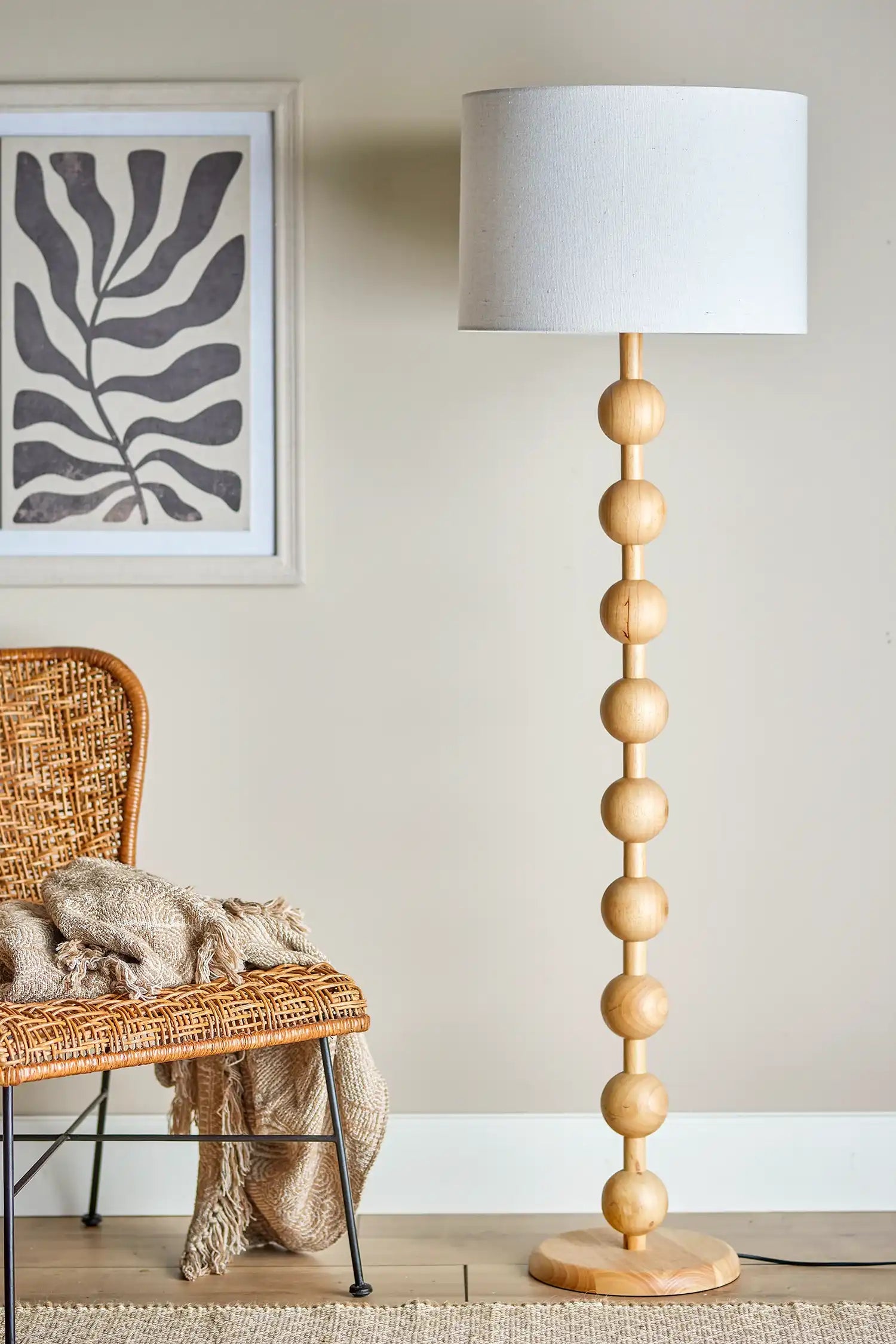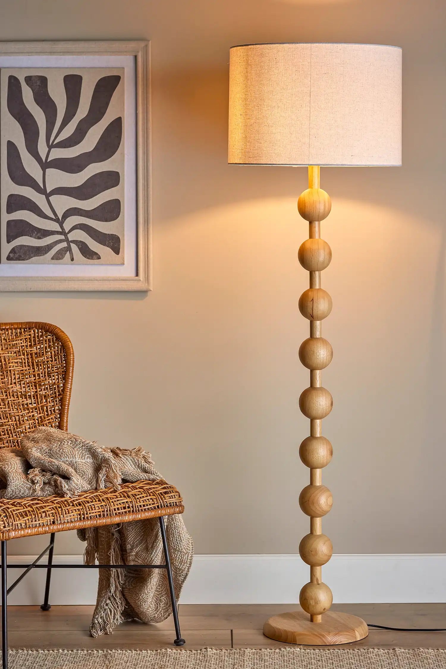 Materials & design: This solid rubberwood lamp features a beautiful wood grain and natural color, allowing it to blend effortlessly into various interior styles. At 154.5 cm tall, the lamp gracefully stands out, while the neutral shade subtly diffuses light that creates a cozy atmosphere without being overpowering.