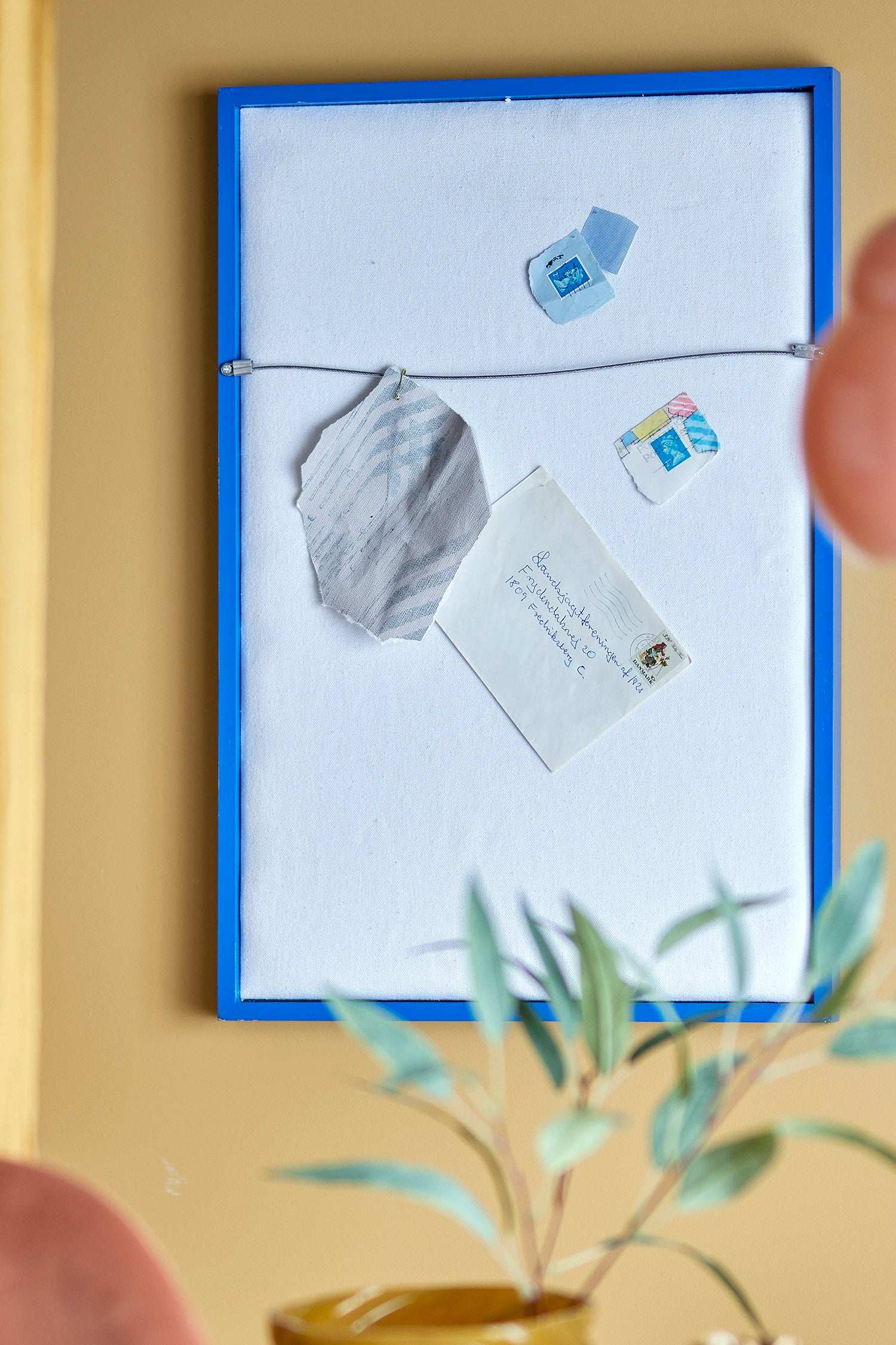 Details & Material: This mirror measures 60 by 40 cm and is made of sturdy MDF. Its refined blue frame adds a subtle accent to any room, and at only 3.5 cm thick, it hangs sleekly on the wall. The back also doubles as a memo board, perfect for organizing your notes, photos, or reminders.