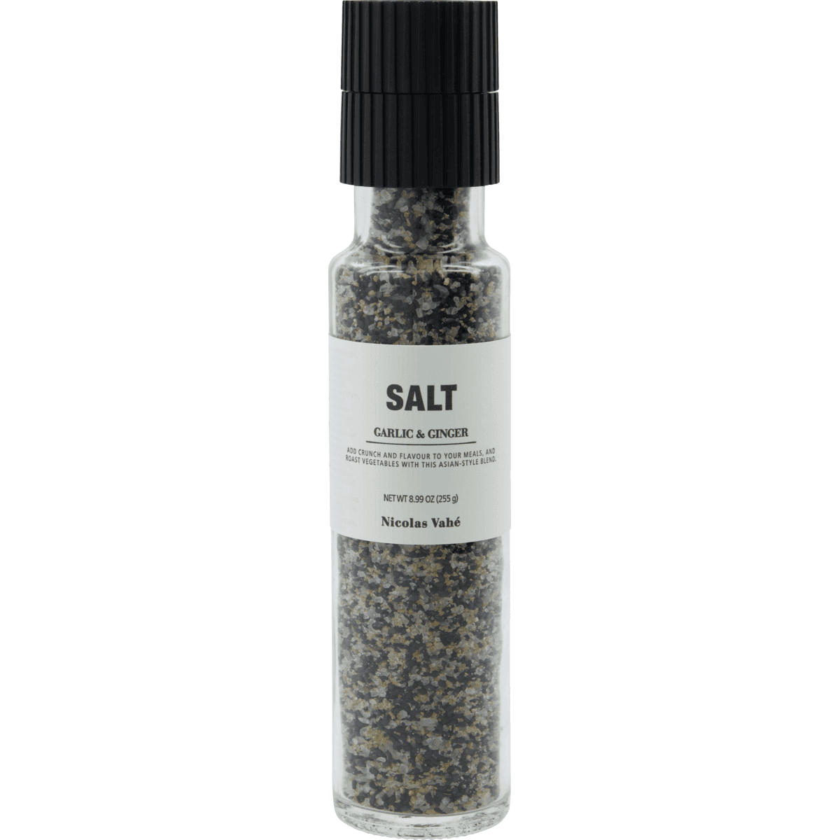 The Nicolas Vahé Salt with Garlic & Ginger - 255G is the seasoning for anyone who loves bold, exotic flavours in the kitchen. This unique salt mill contains an exciting mix of sea salt, garlic, ginger and black sesame seeds. Perfect for adding a deep, savoury flavour to soups, stews and stir-fries with an Asian flair. Thanks to the ceramic mill, the salt is ground evenly into your dishes, so that the aromas of garlic and ginger are optimally released. An indispensable ingredient for the adventurous home chef!