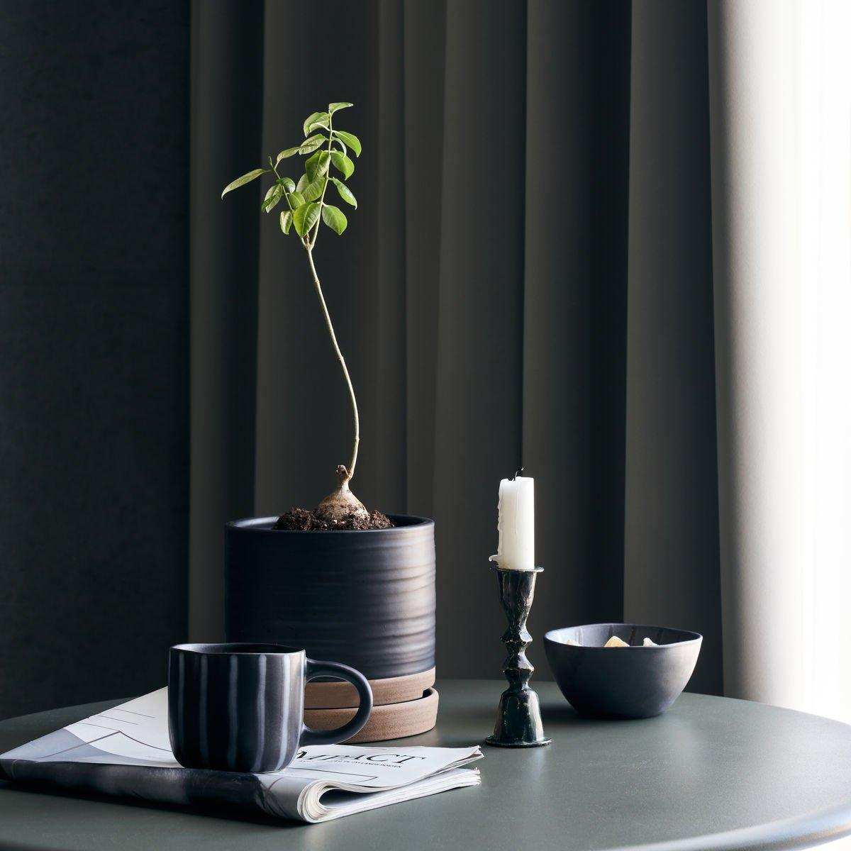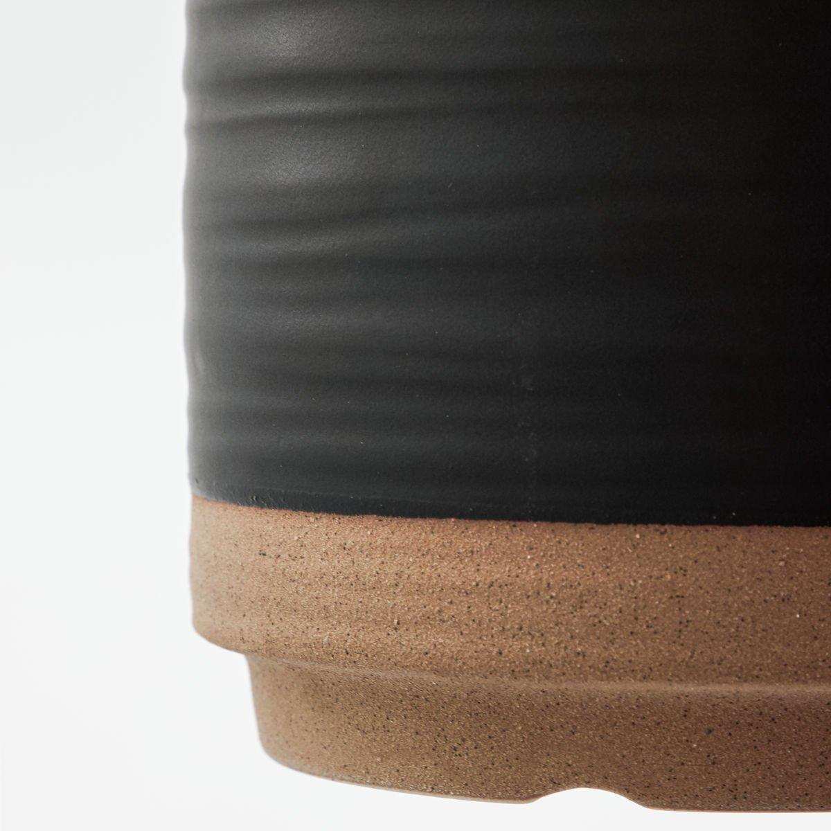 Cada maceta del set Astu presenta una atractiva superficie esmaltada en negro combinada con un color natural, creando un contraste sutil que hace que el diseño destaque y, al mismo tiempo, mantenga un aire atemporal. Los tonos terrosos y la textura de la cerámica aportan un toque orgánico a tu espacio, contribuyendo a una sensación cálida y acogedora.