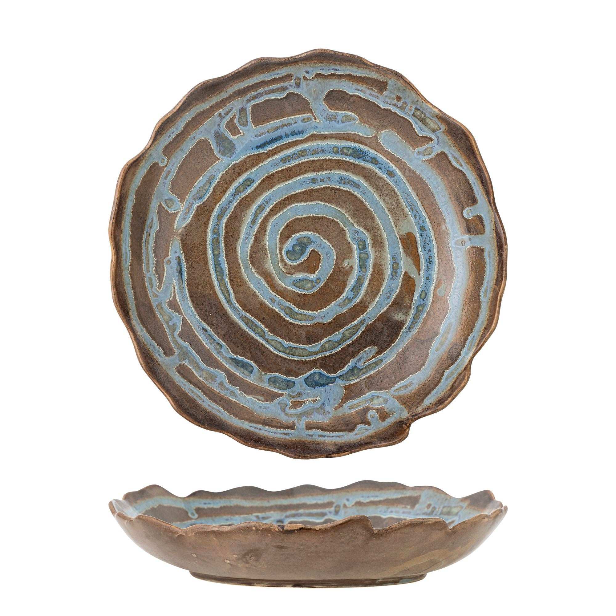 Por qué querrás tener la bandeja de Bloomingville: La Marjorie es una de esas piezas que aporta ambiente al instante. El patrón de espiral pintado a mano y los bordes irregulares le dan carácter a esta bandeja azul, mientras que el esmalte reactivo crea un juego de colores vibrante. Cada ejemplar tiene así su propio aspecto, justo esa sofisticación escandinava que te hace feliz.