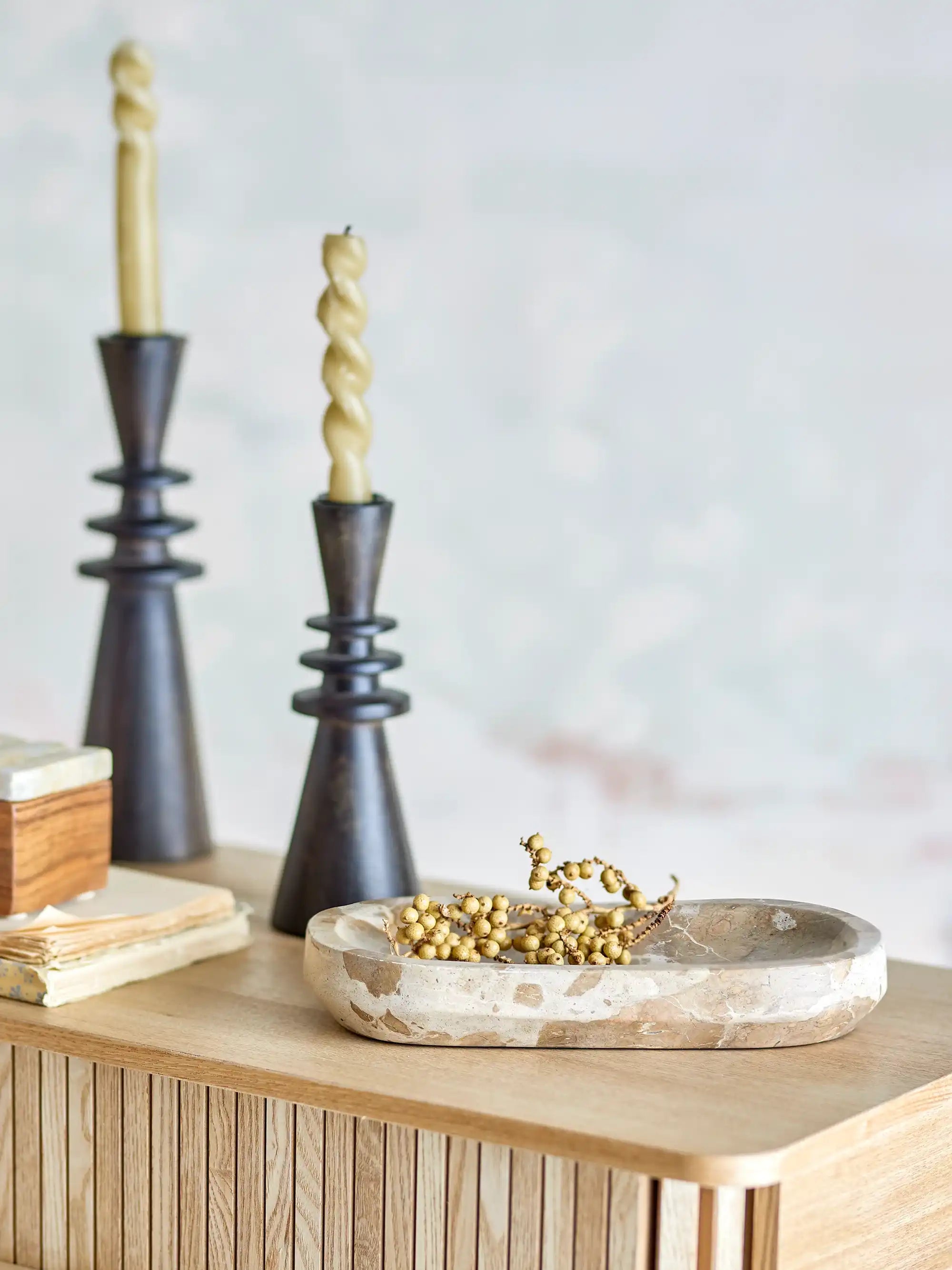 Detalles & material: Cada bandeja está fabricada con mármol auténtico en tonos naturales, por lo que cada pieza es única en color y dibujo. Con unas dimensiones de 24,5 por 12,5 cm y un borde elevado de 3,5 cm, es ideal para presentar con estilo tus decoraciones favoritas, velas aromáticas o joyas.