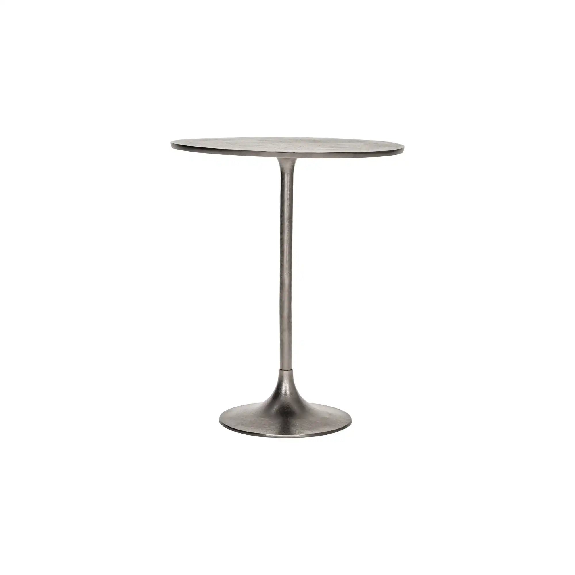 Esta mesa está fabricada en aluminio robusto con un acabado plateado brillante. El diseño esbelto descansa sobre una barra central y una base sólida, lo que le da un aspecto equilibrado. Con una altura de 75 cm y un diámetro de 61 cm, Pan es compacta y elegante, sin perder fuerza.