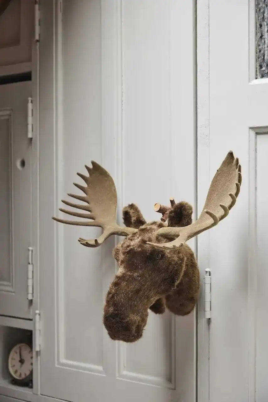 Con esta cabeza de alce de mayor tamaño llevas a casa no solo la grandeza de la naturaleza salvaje, sino también una autenticidad inigualable. La lujosa textura suave, los ricos detalles y el acabado impecable llenan tu interior de un encanto nórdico.