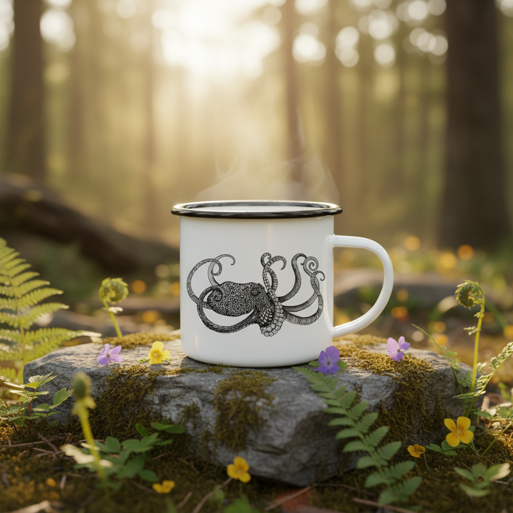 Taza de esmalte hecha a mano Octopus 500ml