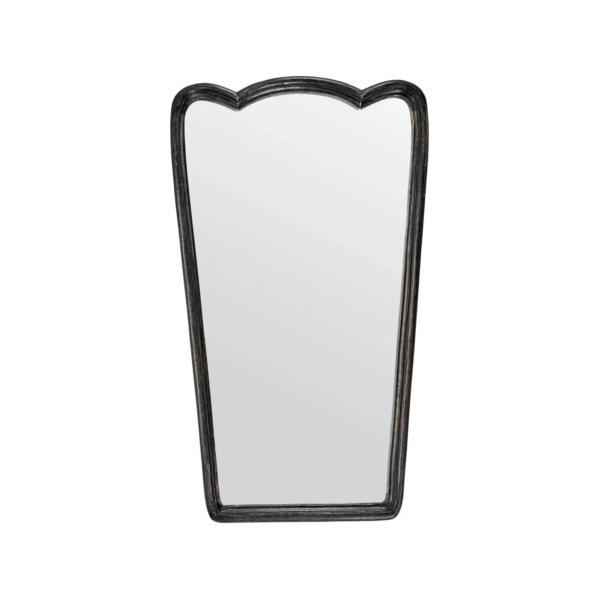 El espejo tiene un marco artesanal de madera de mango, acabado en un tono negro intenso. Cada espejo es único gracias al proceso artesanal: las pequeñas variaciones marcan la diferencia. Con sus dimensiones de 52 cm de ancho, 90 cm de alto y 3,5 cm de profundidad, logra un equilibrio entre una presencia sutil y un toque impactante en la pared.