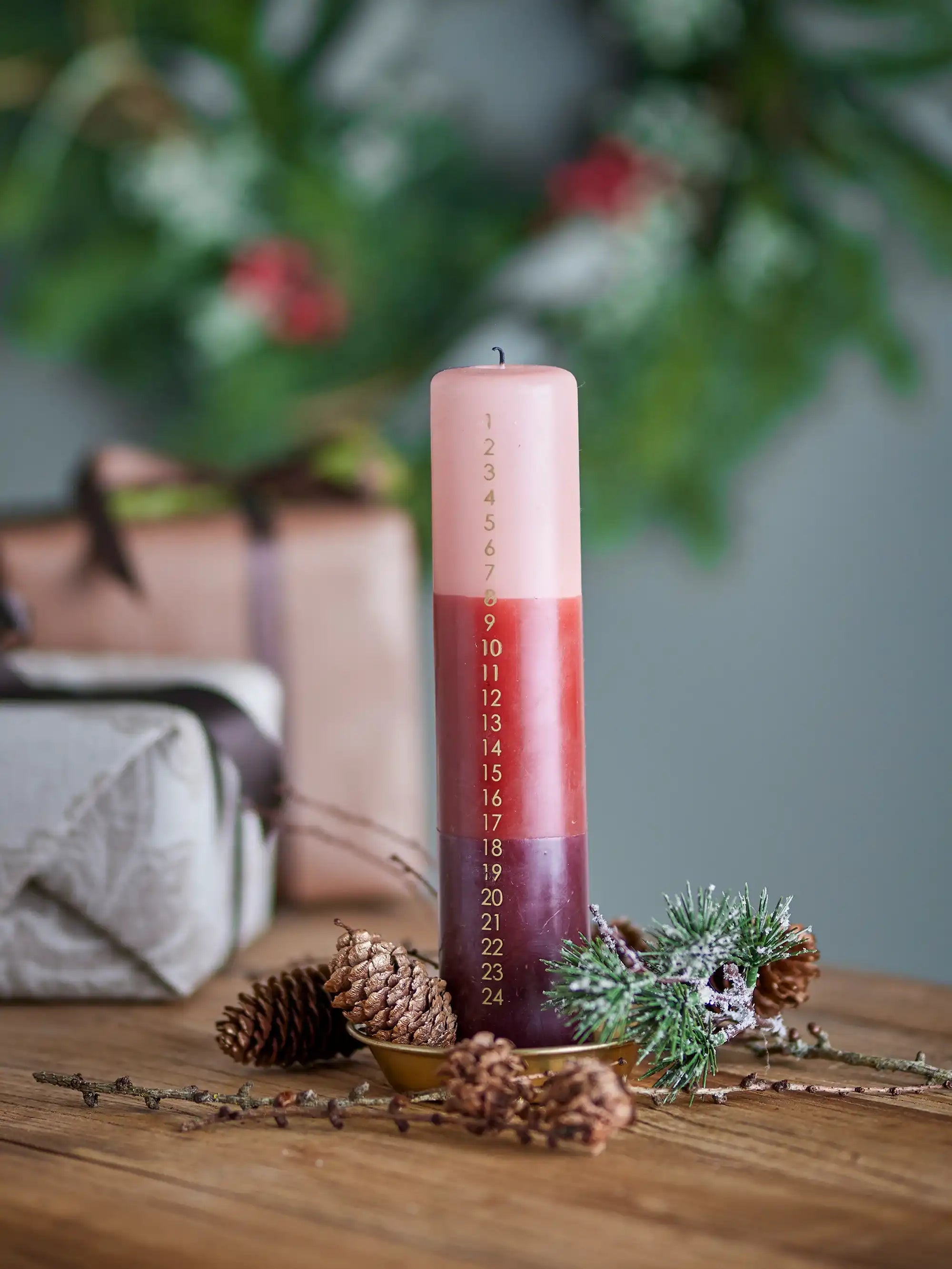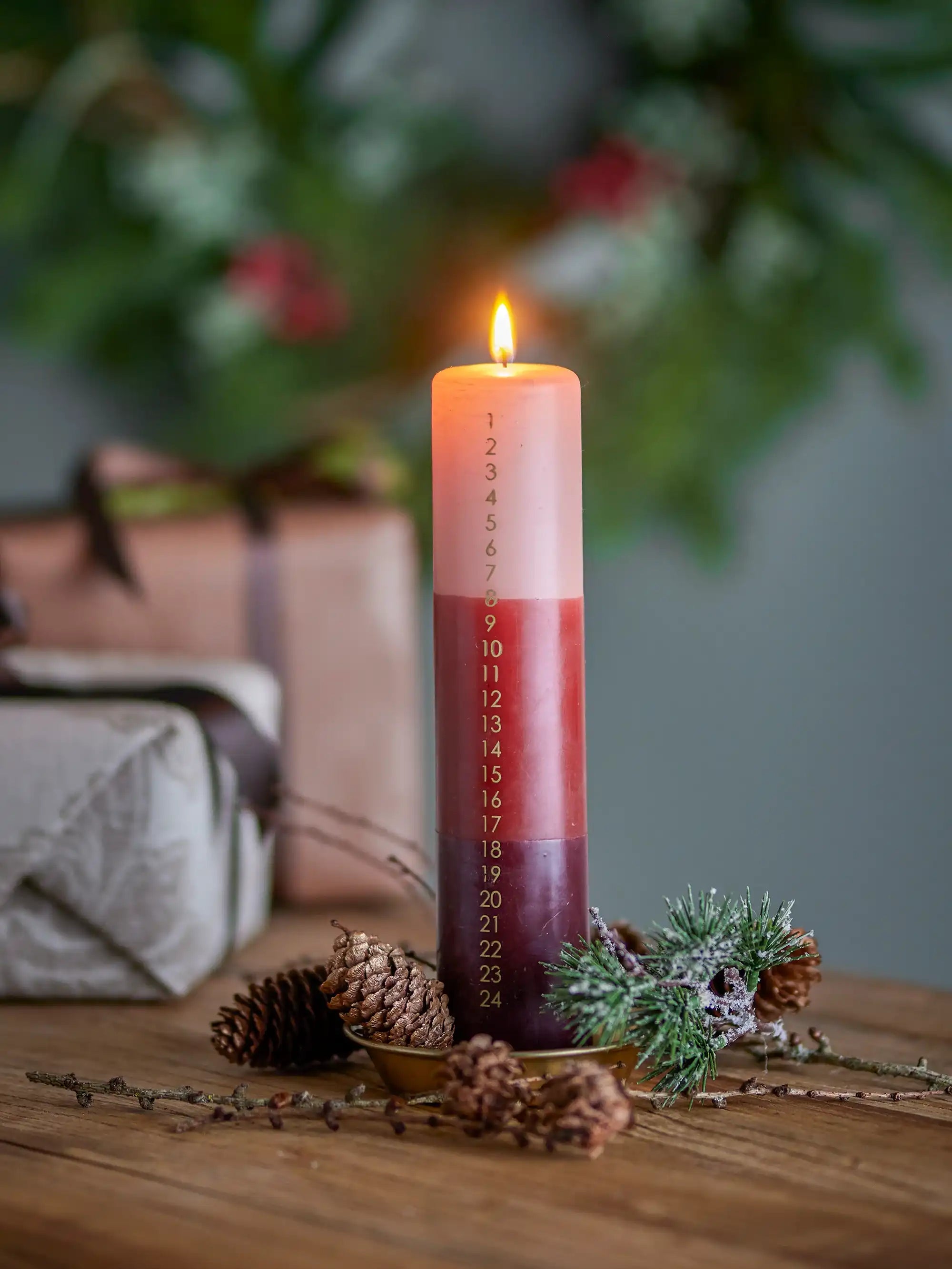 Detalles & material: La vela tiene una altura elegante de 25 cm y está fabricada con parafina de alta calidad. Gracias a la transición lúdica de tonos rojos profundos, combinada con la sutil numeración del 1 al 24, aporta un toque moderno a tu decoración navideña. Con su generoso diámetro de 5 cm, la vela arde de manera uniforme y durante mucho tiempo, perfecta para encender cada día durante el mes de diciembre.