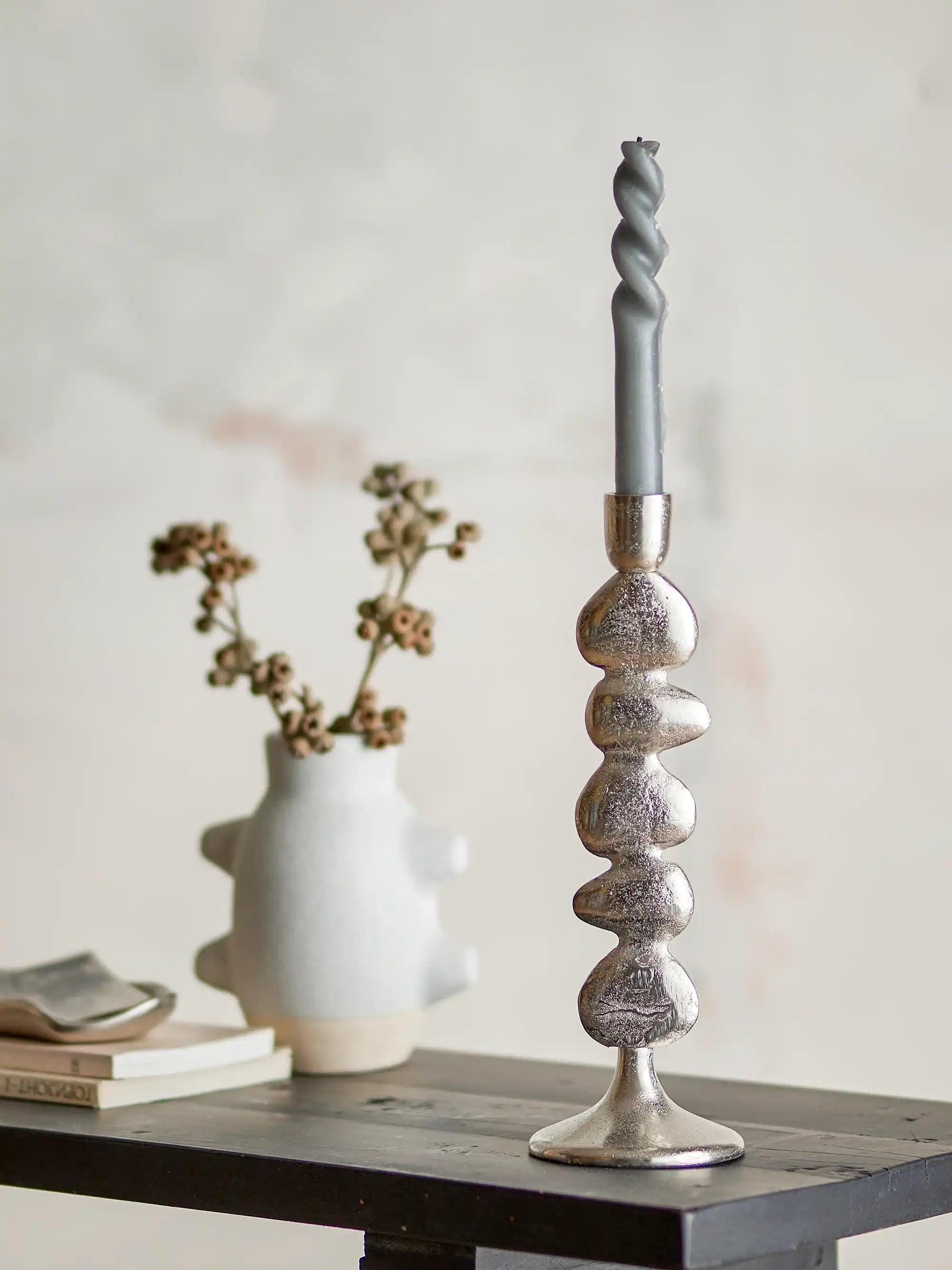 Por qué querrás tener este candelabro: Aporta un ambiente sofisticado y moderno a tu interior con este candelabro plateado Metina. Su superficie brillante y la forma lúdica y orgánica llaman la atención de inmediato y añaden un toque único a cualquier espacio.