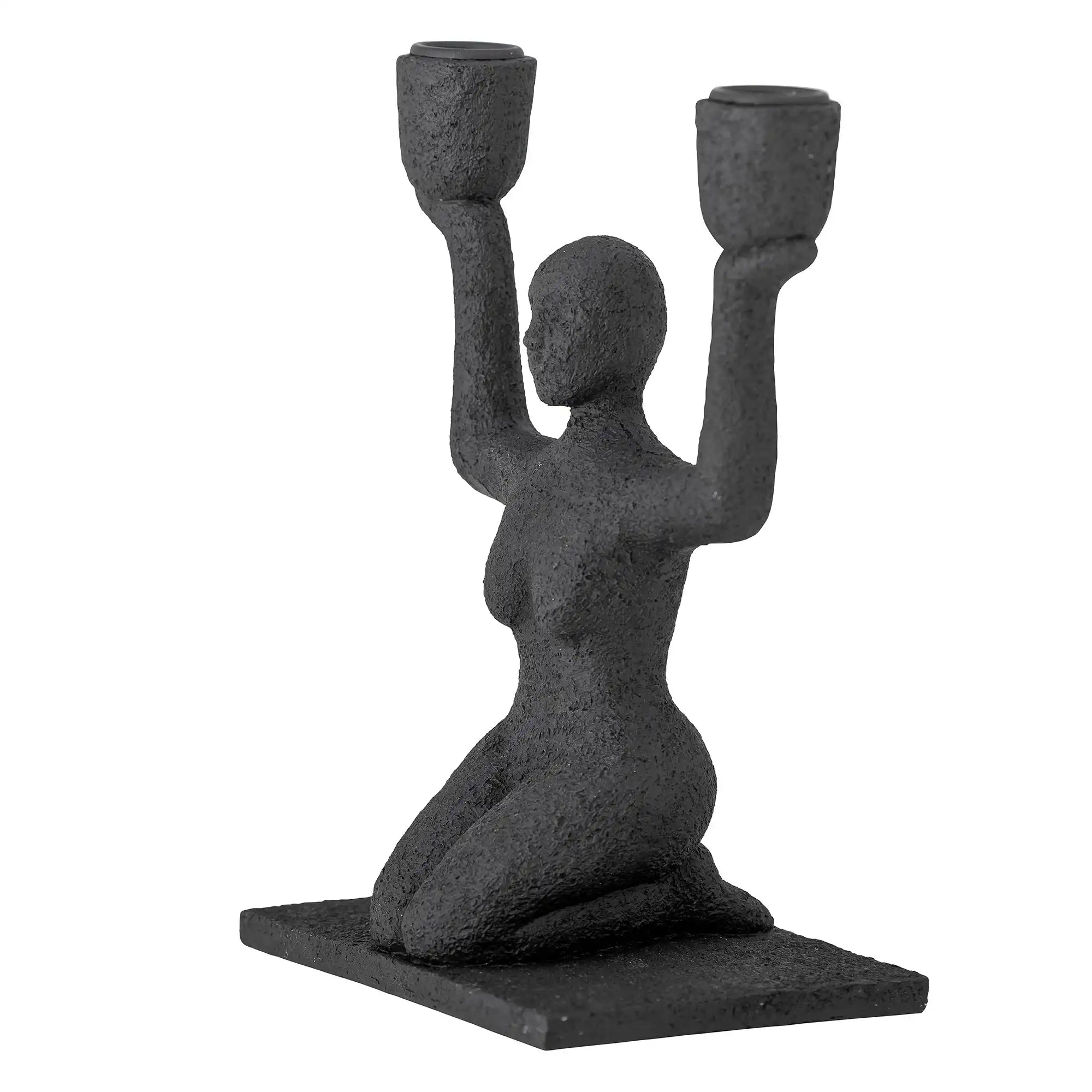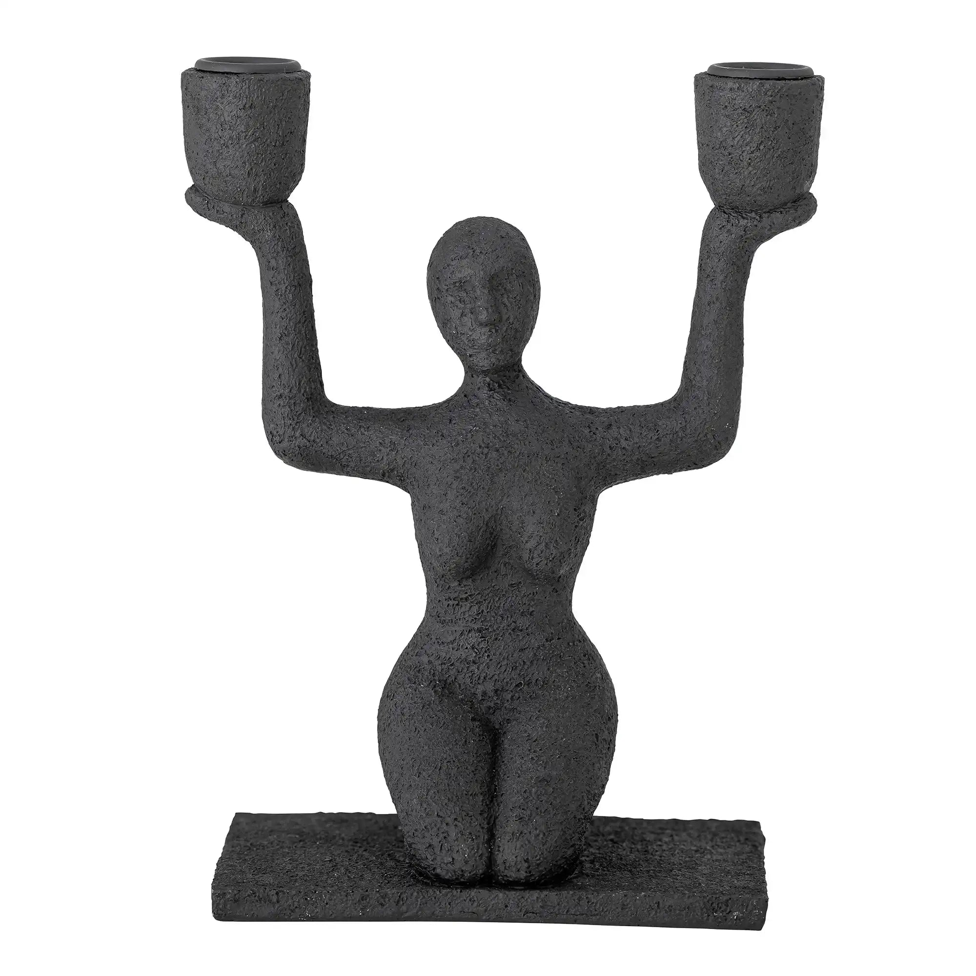 Detalles y material: El candelabro Lucie está fabricado en resistente poliresina y acabado en un negro profundo con una textura sutilmente rugosa, lo que le da un aspecto moderno y artístico. Con sus dimensiones de 23 cm de alto, 11 cm de ancho y 18 cm de fondo, es un llamativo elemento decorativo para la mesa o el alféizar, fácil de combinar con otros accesorios para el hogar.