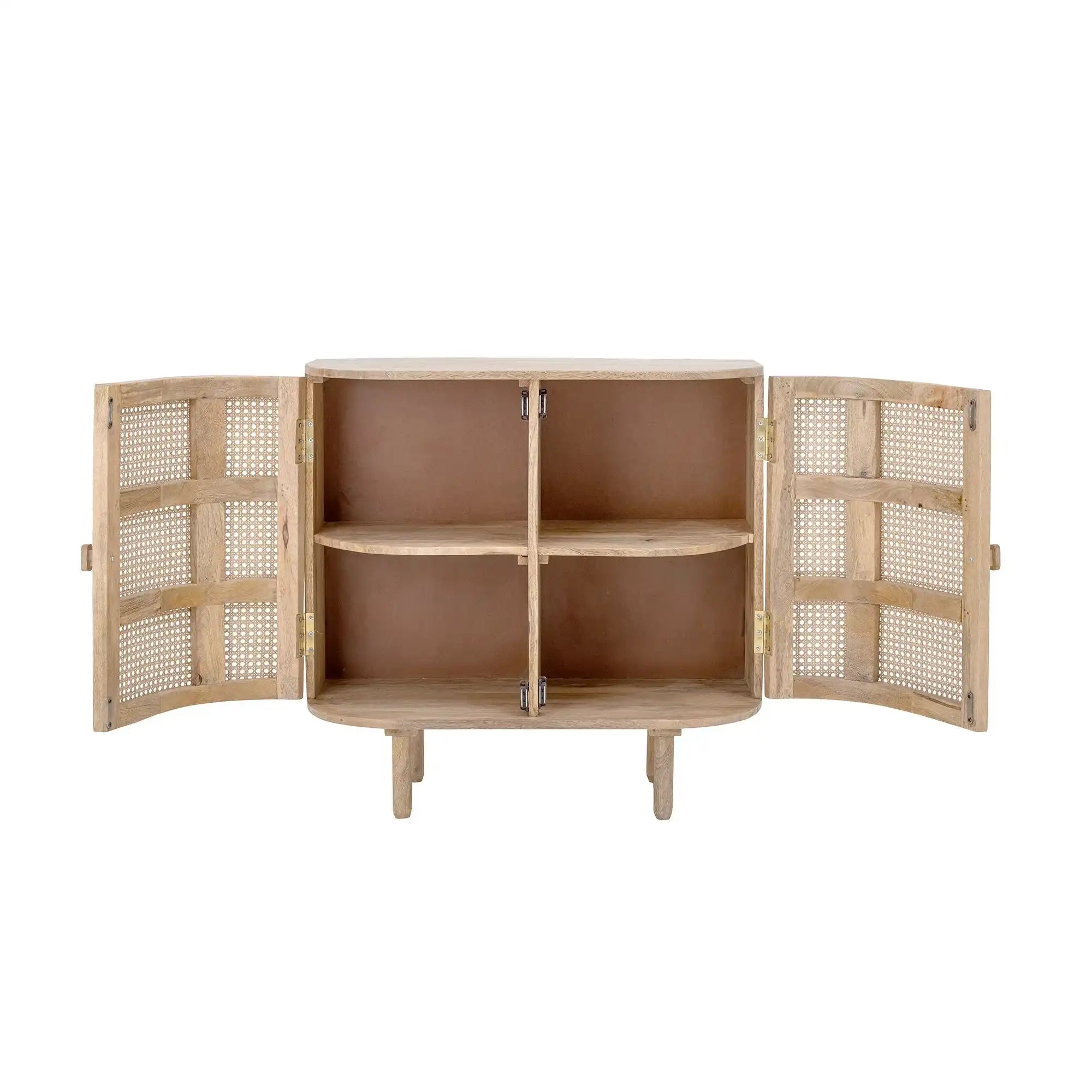 Consejo de uso: Deja que las puertas de caña destaquen repitiendo una paleta de colores calmada detrás del trenzado: apila lino en tonos suaves o agrupa cristalería y cerámica en matices armoniosos. Sobre la superficie, un jarrón bajo o un cuenco escultórico quedan preciosos con la forma redondeada. Para el mantenimiento, basta con quitar el polvo regularmente con un paño seco y suave; así la madera y la caña se mantienen bonitas. ¿Quieres refinar tu espacio con estilo? Elige el Bandol y marca la diferencia.