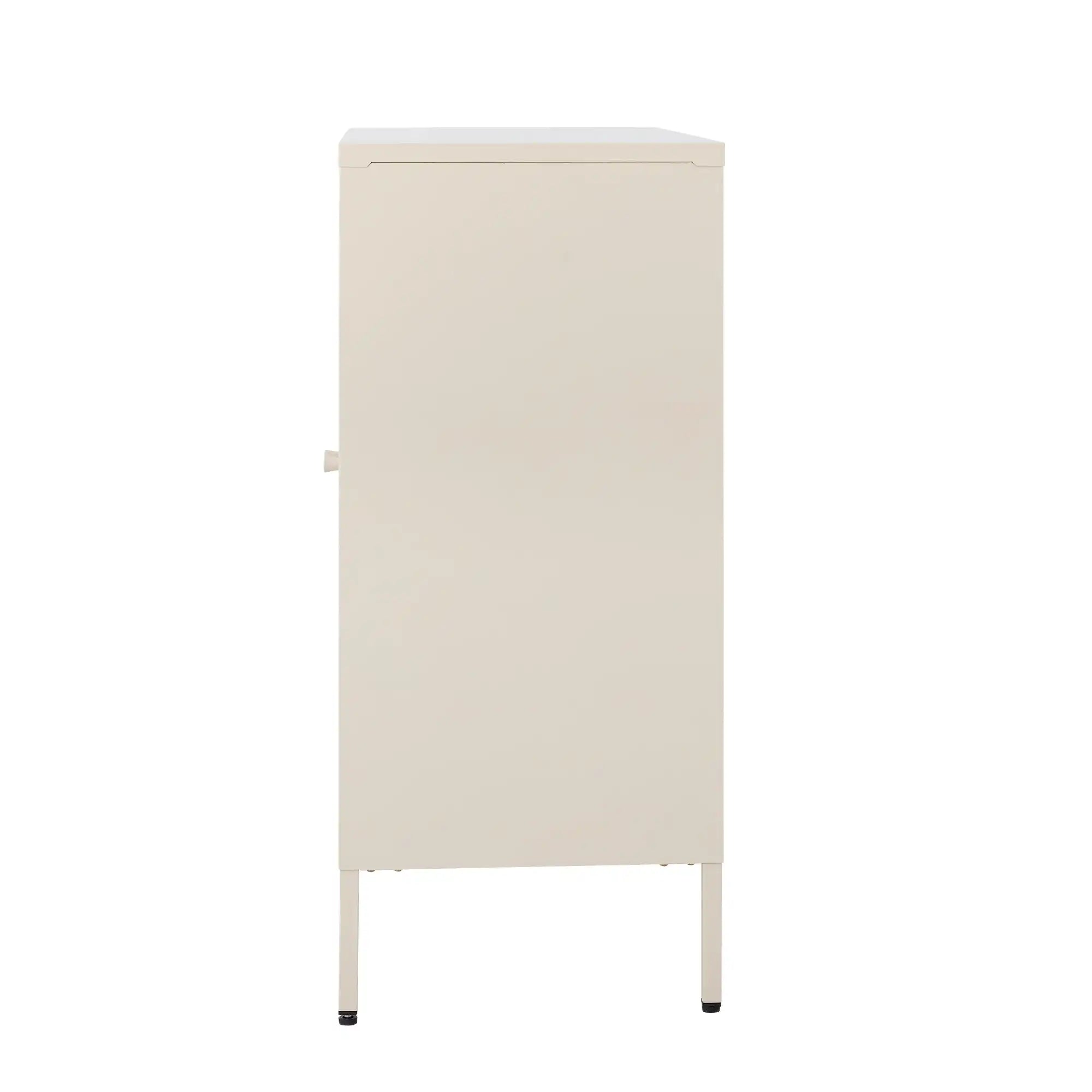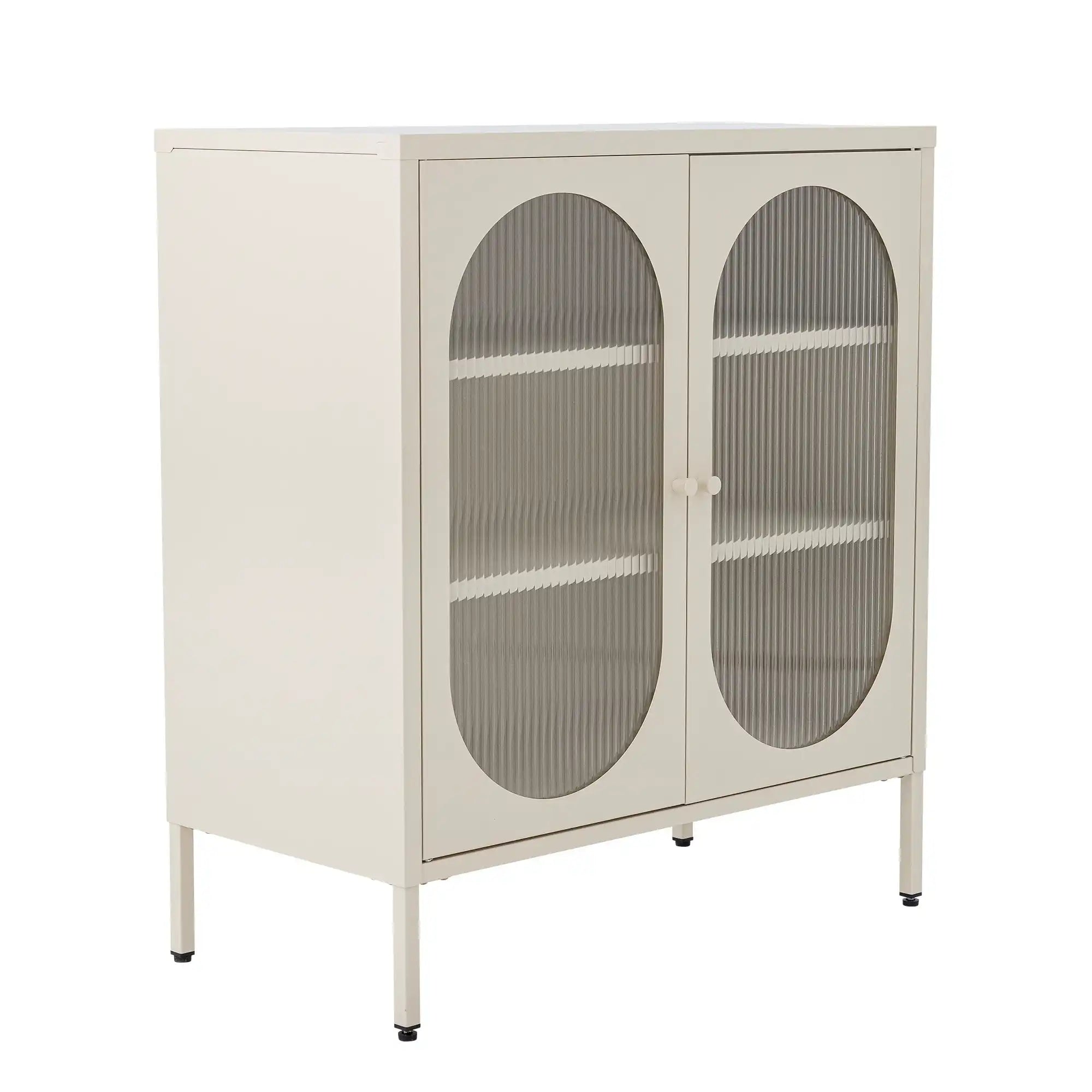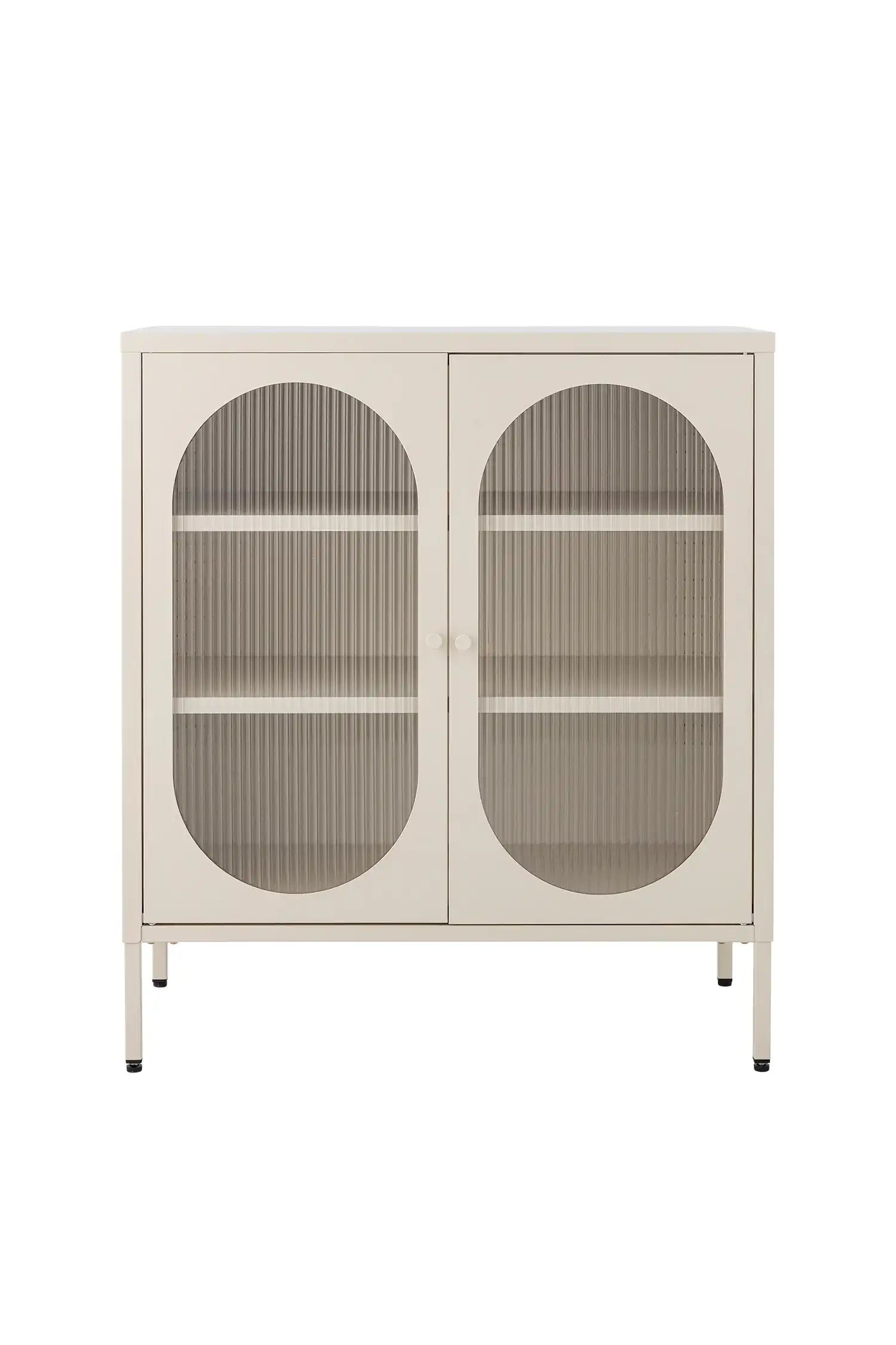 Detalles & material: El armario está fabricado en metal resistente y cuenta con dos preciosas puertas de elegante cristal acanalado. Gracias a sus generosas dimensiones (40 cm de ancho, 80 cm de fondo y 90 cm de alto) y sus prácticas estanterías, puedes guardar fácilmente todo tipo de objetos del hogar, mientras que el carácter abierto del cristal muestra el contenido de forma sutil.