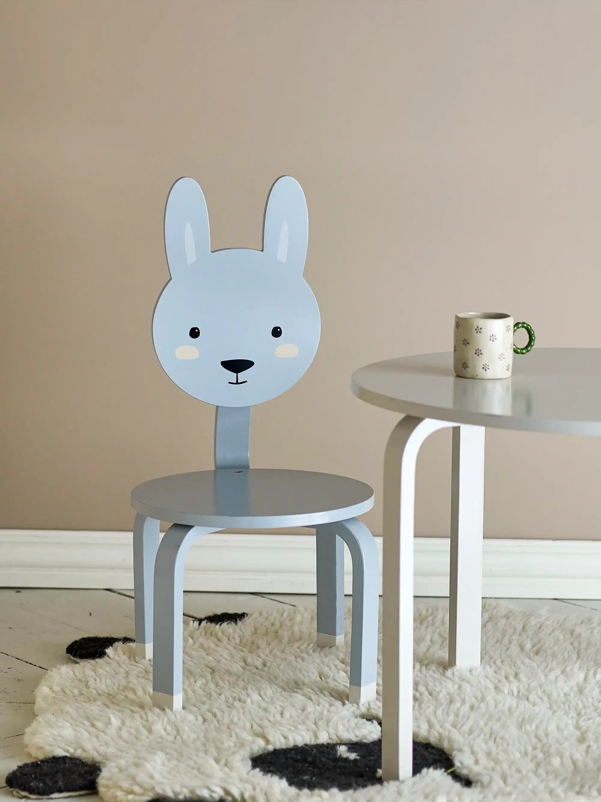Detalles y material: La Marle está hecha de madera (FSC®100%) y tiene un color gris suave. Esta combinación crea un rincón bonito y tranquilo en la habitación. Con unas medidas de ancho × alto × fondo 30 × 58 × 40 cm, encaja bien en espacios pequeños, pero sigue siendo muy cómoda. El respaldo con orejas de conejo le da un toque juguetón. Las superficies lisas son fáciles de limpiar. La madera aporta un aspecto sereno y una sensación agradable al tacto. El gris claro la hace acogedora y combina muy bien con otros colores, ya sean tonos pastel o estampados alegres.