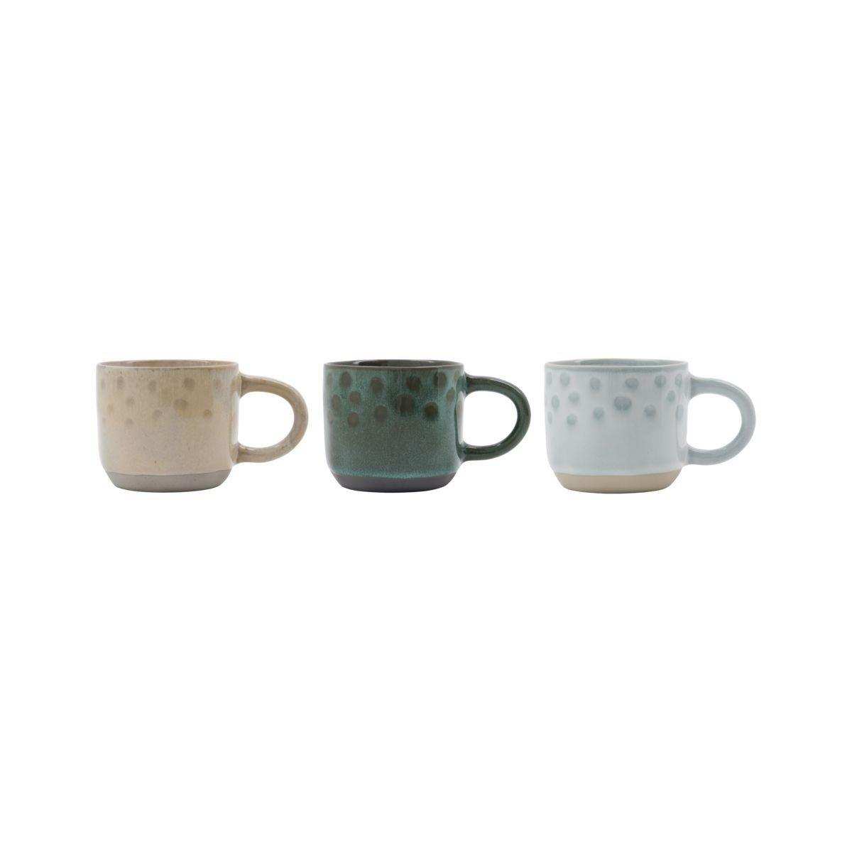 Tanto si disfrutas de una taza de café caliente por la mañana como si te relajas con un té por la noche, el House Doctor Mokken Cadeau Set Like crea un momento especial. Este set de tres tazas de cerámica hechas a mano tiene un acabado único con puntos y viene en preciosos colores relajantes: beige, verde y azul. Gracias a su diseño atemporal y sus cómodas asas grandes, estas tazas se sienten muy bien en la mano y son perfectas para cualquier ocasión. ¡Una elección elegante para ti o para regalar!