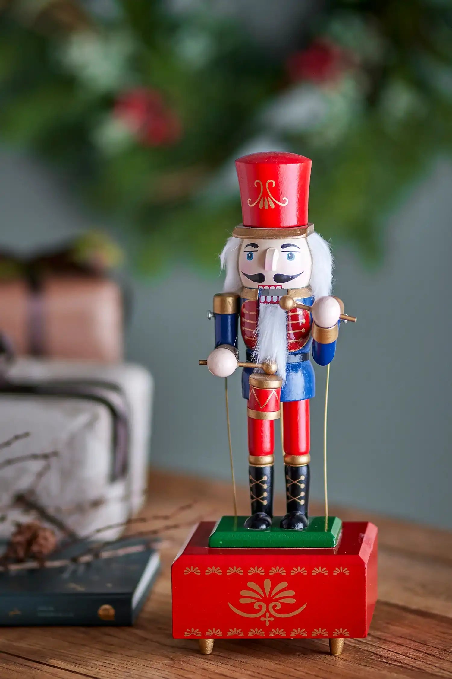 Por qué querrás tener esta caja de música: Con su cálido color rojo y la encantadora figura de cascanueces, esta caja de música Waltz de Bloomingville aporta un ambiente navideño acogedor a tu hogar. Te cautivará al instante la melodía nostálgica y el alegre movimiento del tambor, ideal para quienes disfrutan de los detalles llenos de ambiente.